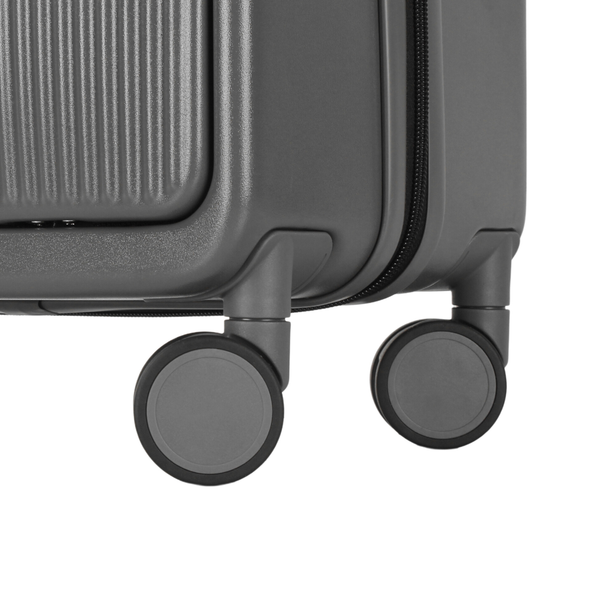 Štyri 360° otočné dvojkolieska zabezpečujú hladký a tichý pohyb na všetkých typoch povrchov. O jednoduché ovládanie sa stará teleskopická trojstupňová rukoväť a dve pevné rukoväte na hornej aj bočnej strane kufra.