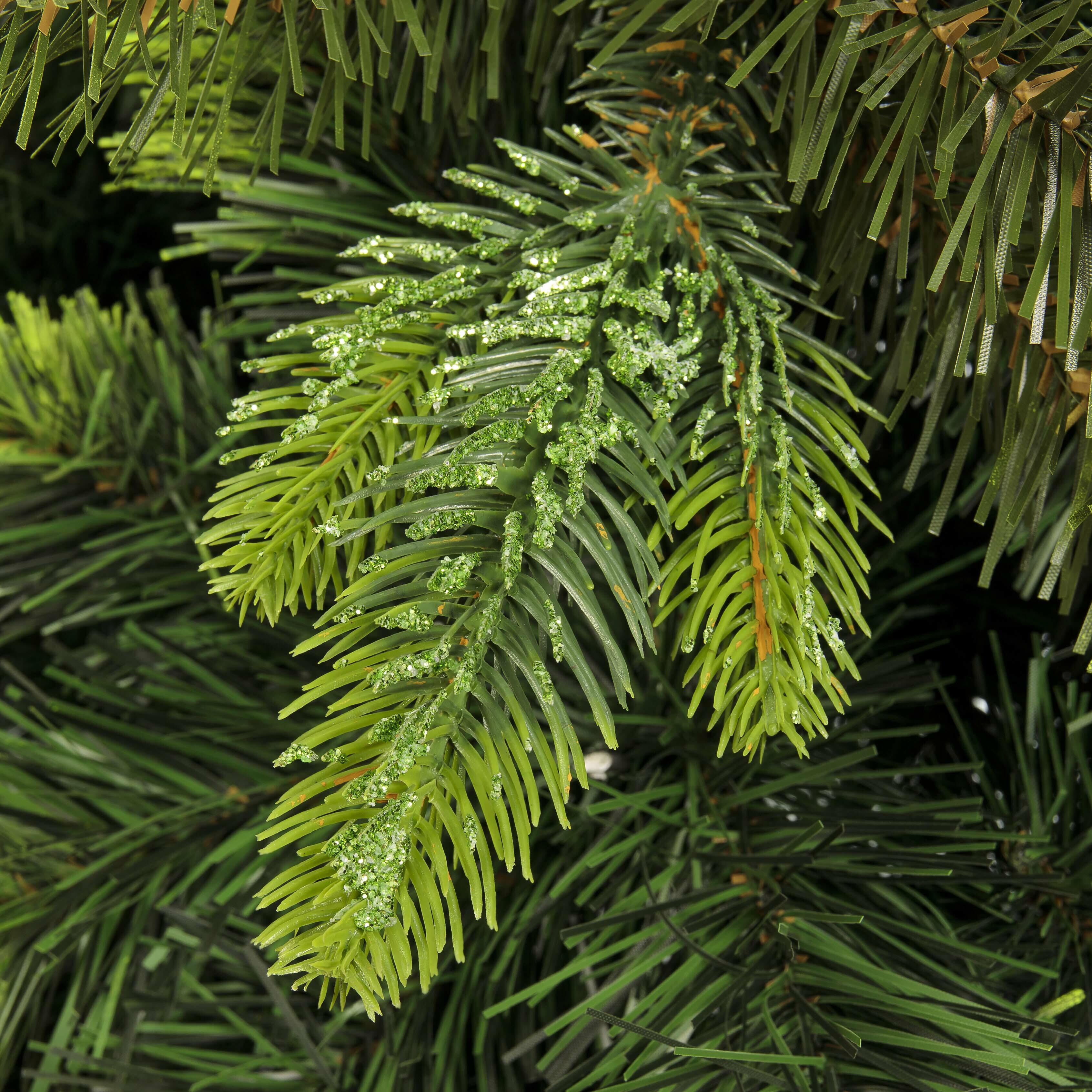 Luxusný umelý vianočný stromček s celkovou výškou 150 cm v prírodnom vzhľade zasneženej zelenej hustej borovice.