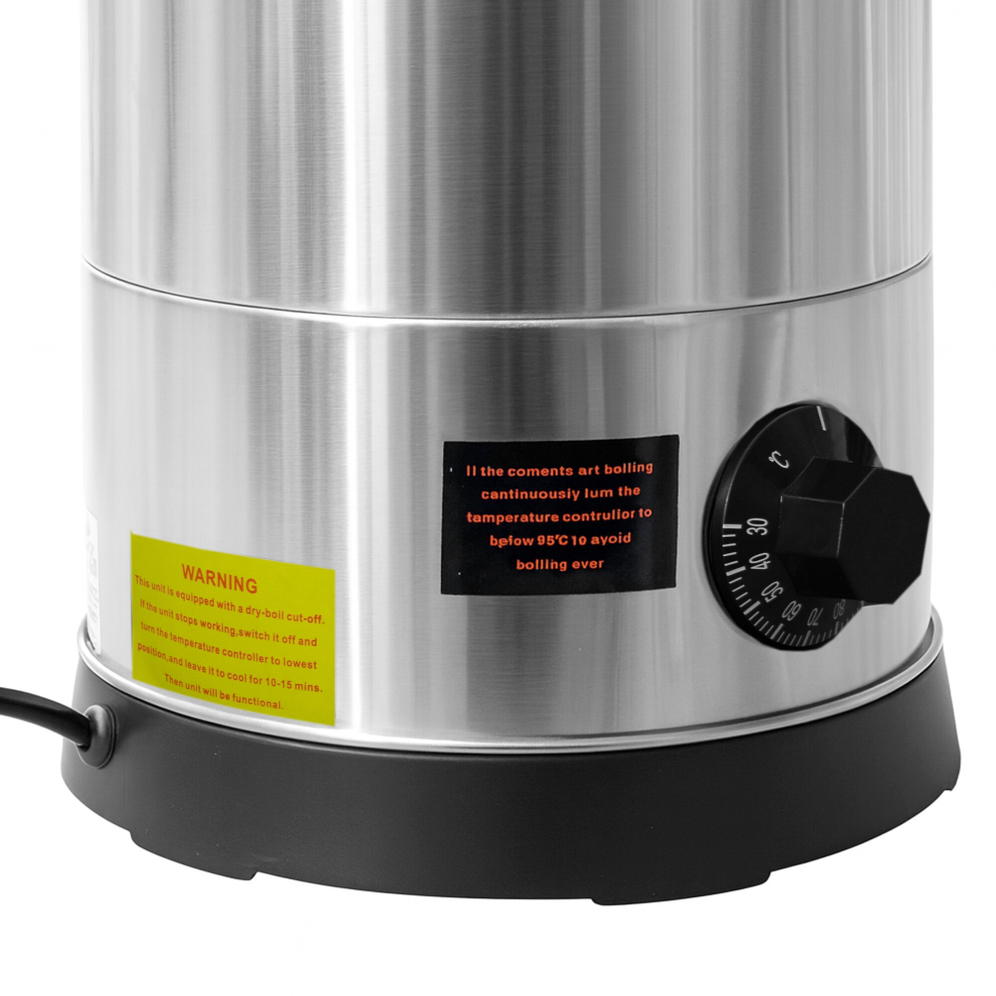 Zvolenú teplotu môžete nastaviť pomocou praktického otočného ovládača v rozmedzí od 30 do 110 °C podľa toho, či chcete tekutinu v hrnci udržiavať teplú alebo ju priviesť do varu. Po zahriatí jednotky sa rozsvieti indikátor vedľa ovládača.
