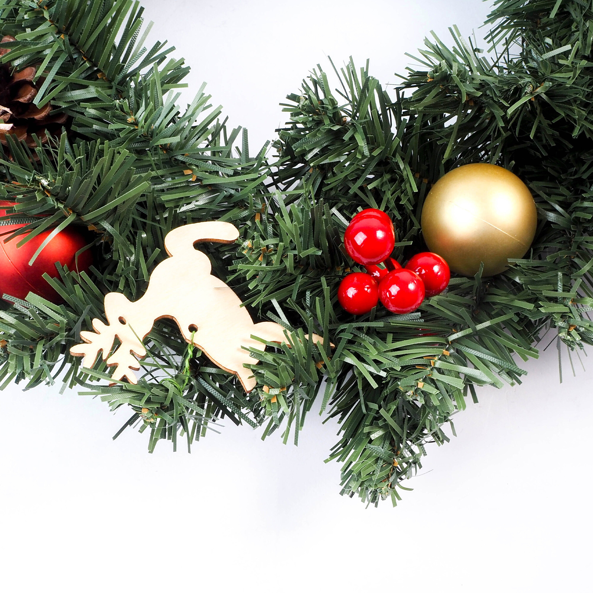 Krásny vianočný veniec zdobený drobnými ozdobami je univerzálnou a štýlovou ozdobou pre vianočný čas.