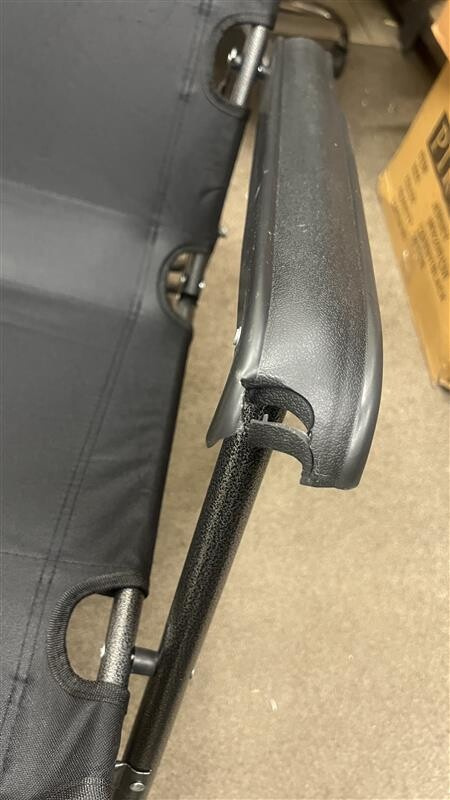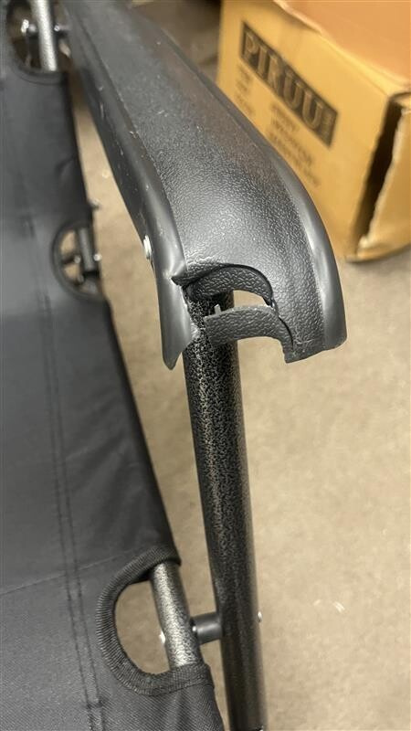 Táto stolička je plne použiteľná, avšak má rozbitú bočnú opierku. Môže byť mierne špinavá alebo zaprášená a je dodávaná bez pôvodného obalu.