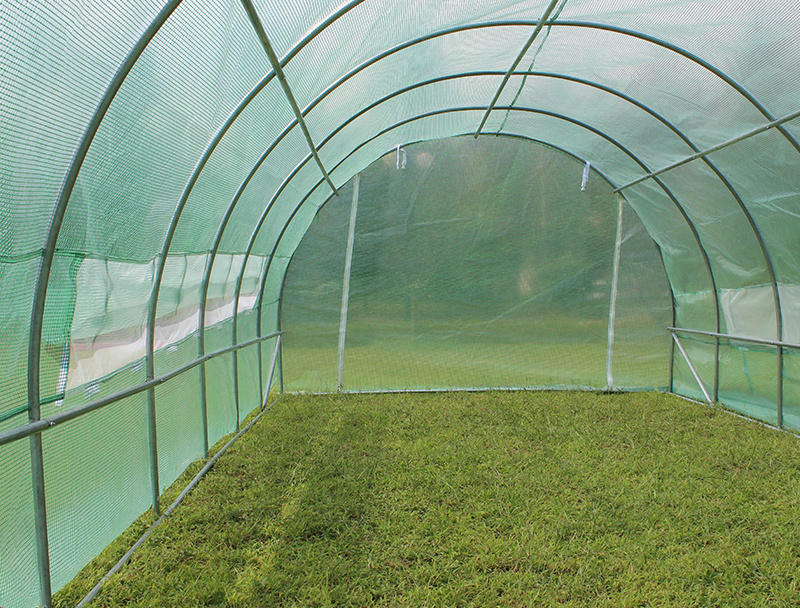 Transparentná vrstva PE fólie dodáva pozoruhodné vlastnosti termoregulácie a maximálnej priepustnosti svetla.Zelená sieťka mesh z PP zapustená v štruktúre fólie ju zosilňuje a chráni proti pretrhnutiu a mechanickému poškodeniu.