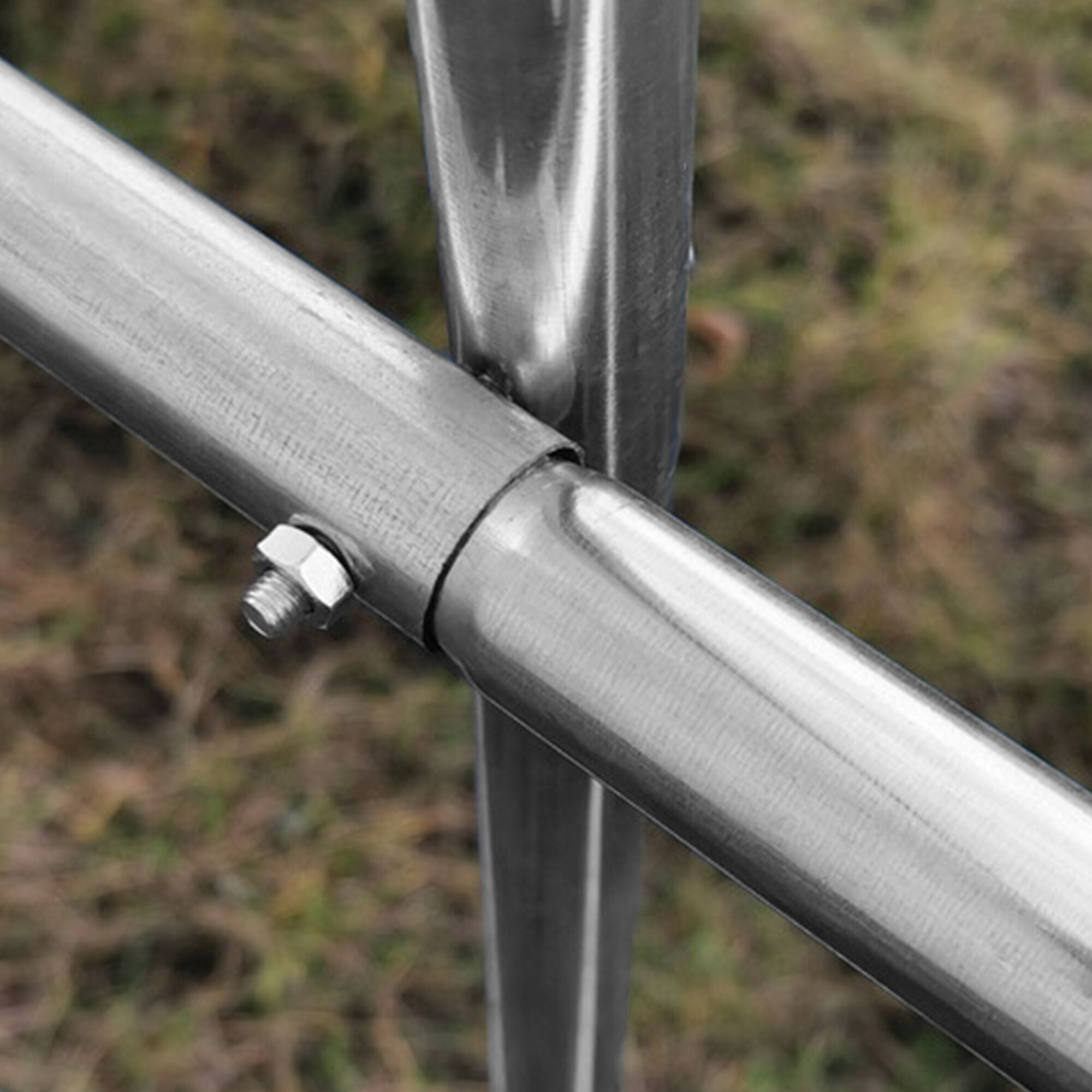 Jednoduchá montáž a možnosť zostavenia takmer kdekoľvek na záhrade. Konštrukciu tvoria oceľové rúrky práškovo lakované pre maximálnu pevnosť a dokonalú ochranu proti korózii.Spoje sú skrutkované, čo spoľahlivo zaručuje tuhosť konštrukcie.