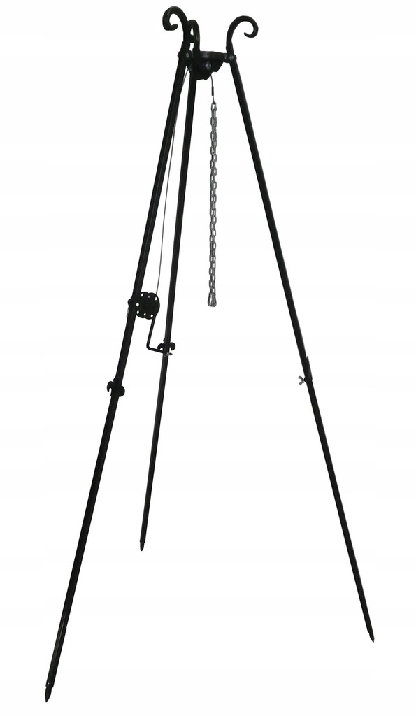 ak radi kempujete a varíte v klasickom kotlíku, táto trojnožka sa vám bude hodiť na zavesenie roštu alebo kotlíka nad ohnisko. Háčik na retiazke slúži na zavesenie. Vďaka použitému materiálu má statív veľmi dlhú životnosť.