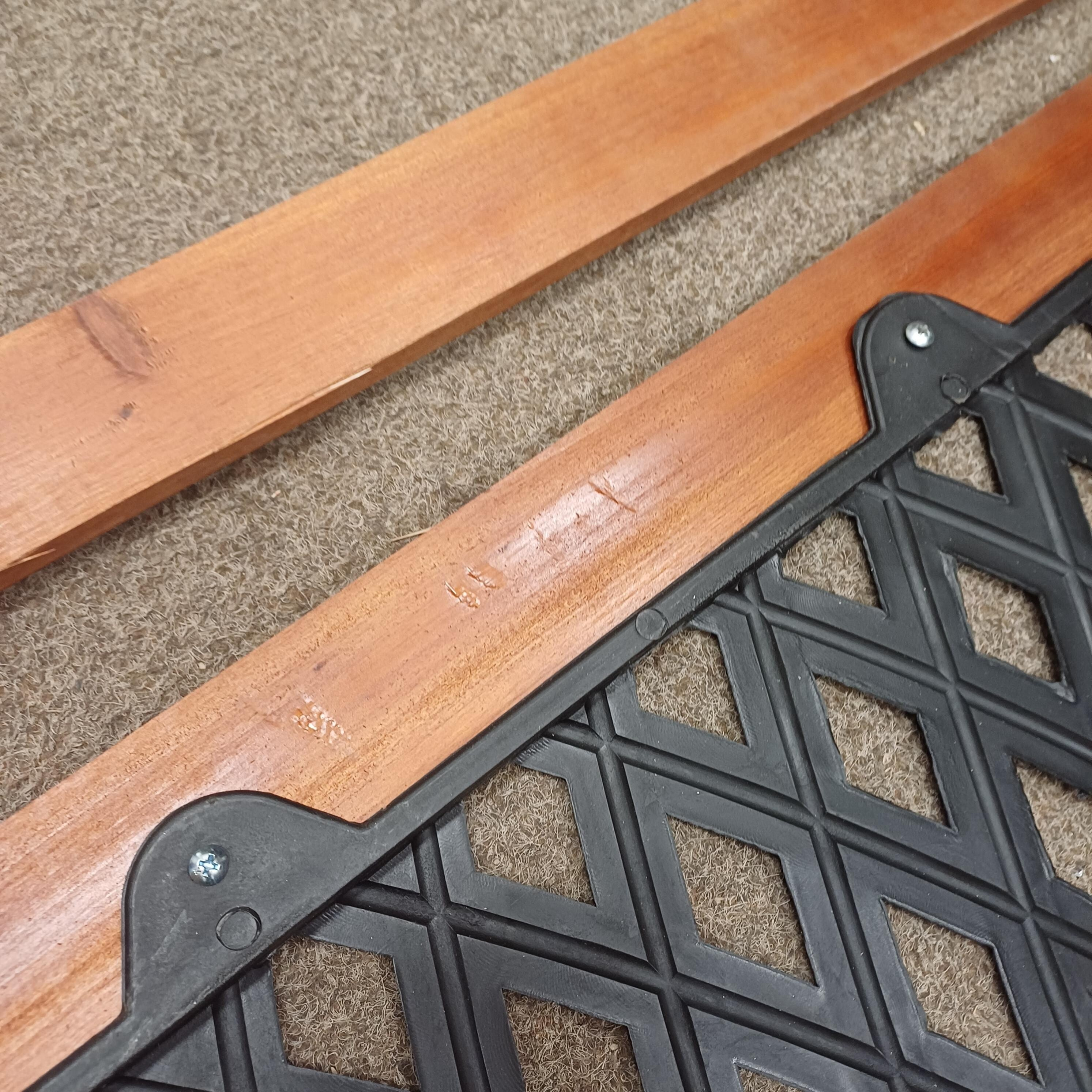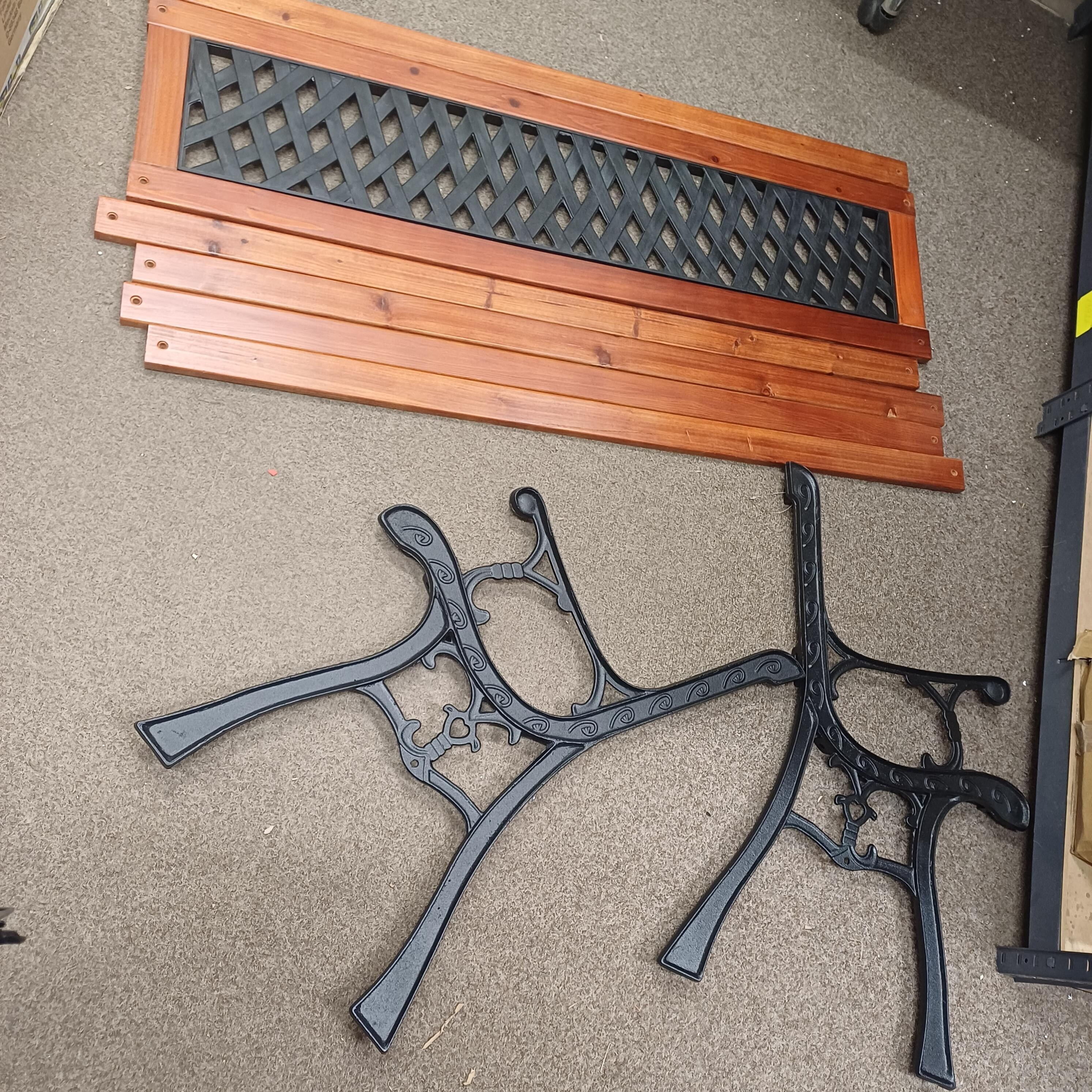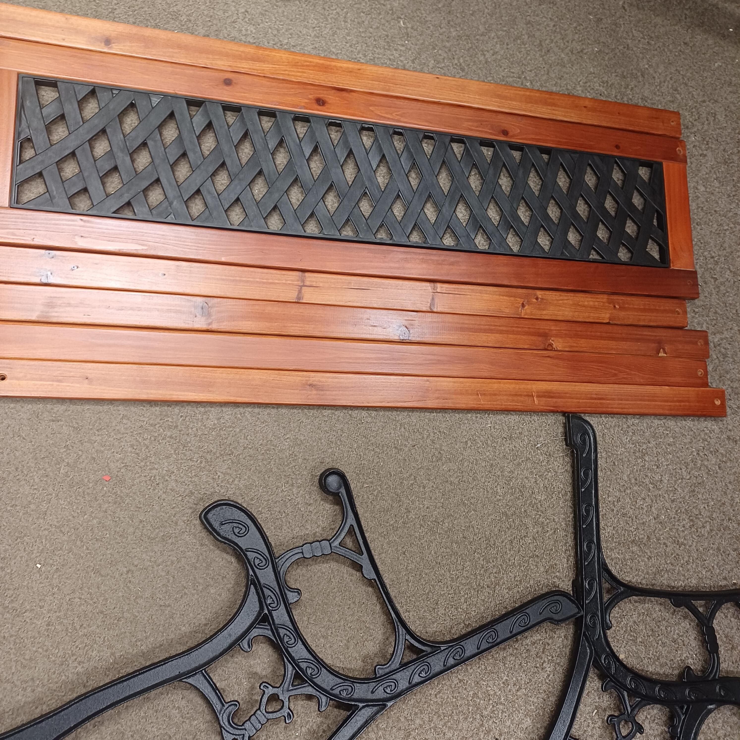 Pevná liatinová konštrukcia doplnená drevenými lamelami. nosnosť lavičky 150 kg.