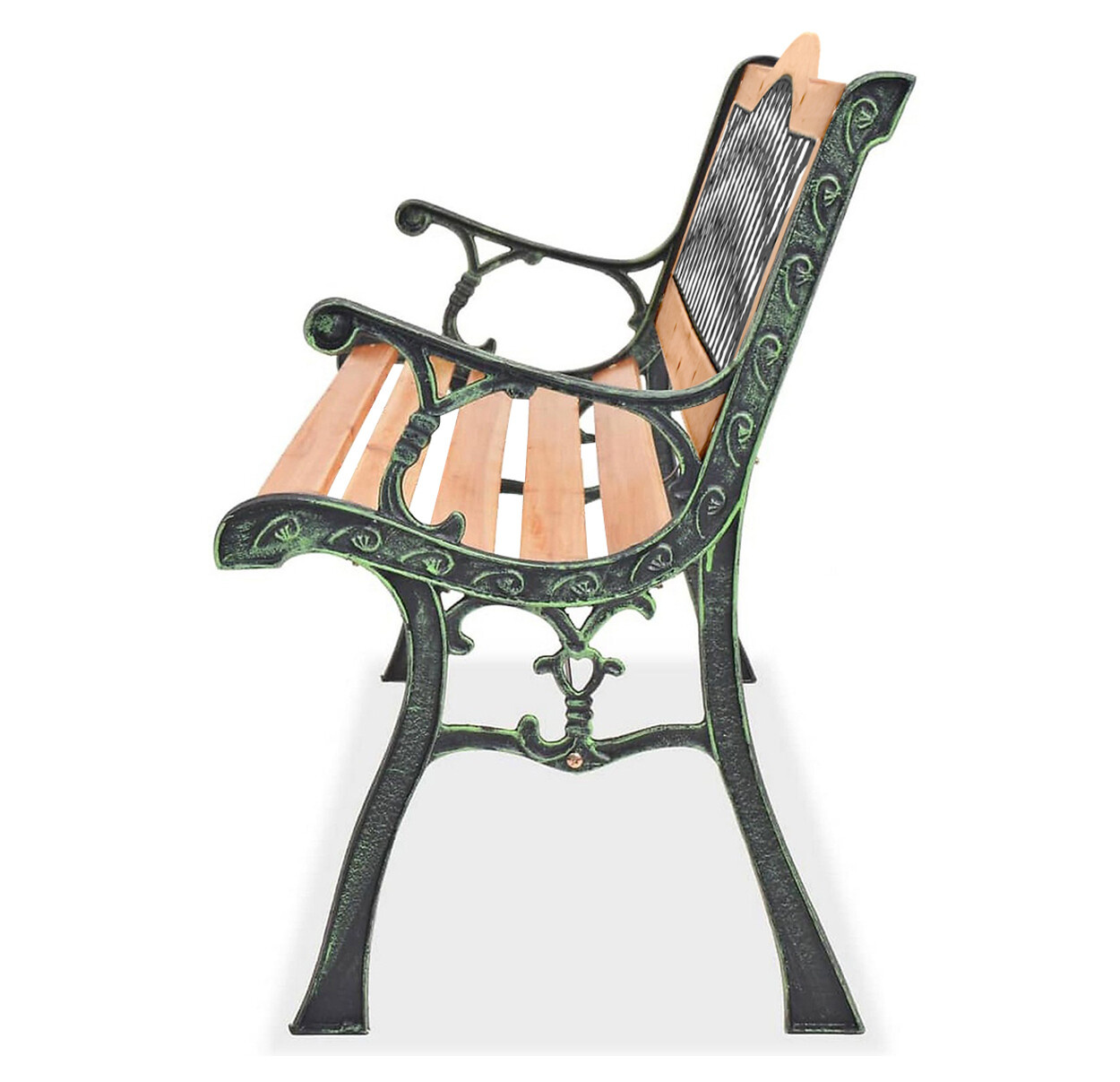 Pevná oceľová konštrukcia doplnená drevenými lamelami. nosnosť lavičky 240 kg.