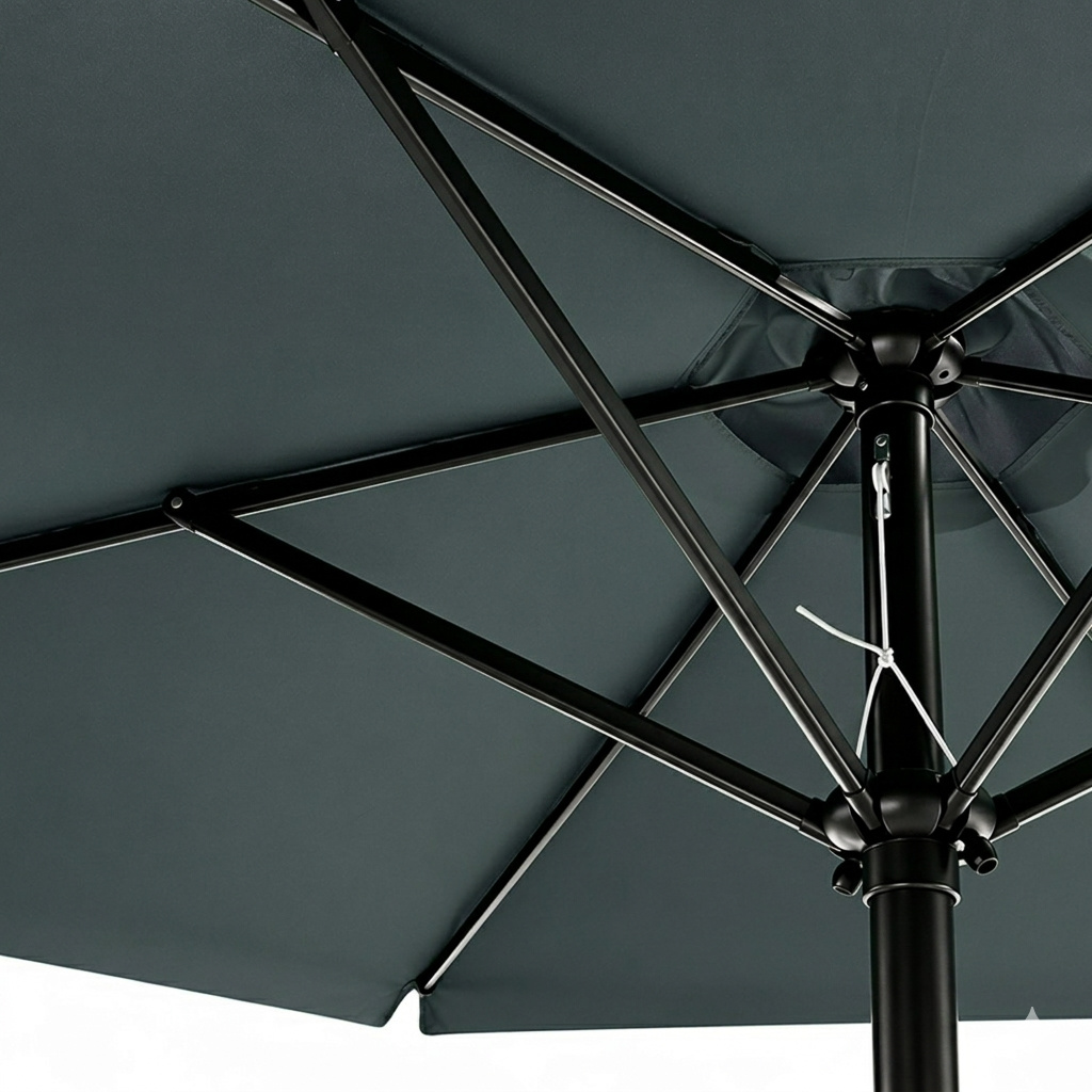 Konstrukcia slnečníka je vyrobená z kvalitného hliníka, ktorý vyniká svojou pevnosťou a zároveň nízkou hmotnosťou. Oproti klasickej oceli je hliníkový slnečník odolnejší voči korózii, čo z neho robí ideálne riešenie pre dlhodobé vonkajšie použitie. Stabilitu celej konštrukcie zabezpečuje robustná stredová tyč s priemerom 48 mm spolu s pevnými rebrami, vďaka ktorým slnečník drží tvar a odoláva bežným poveternostným podmienkam.