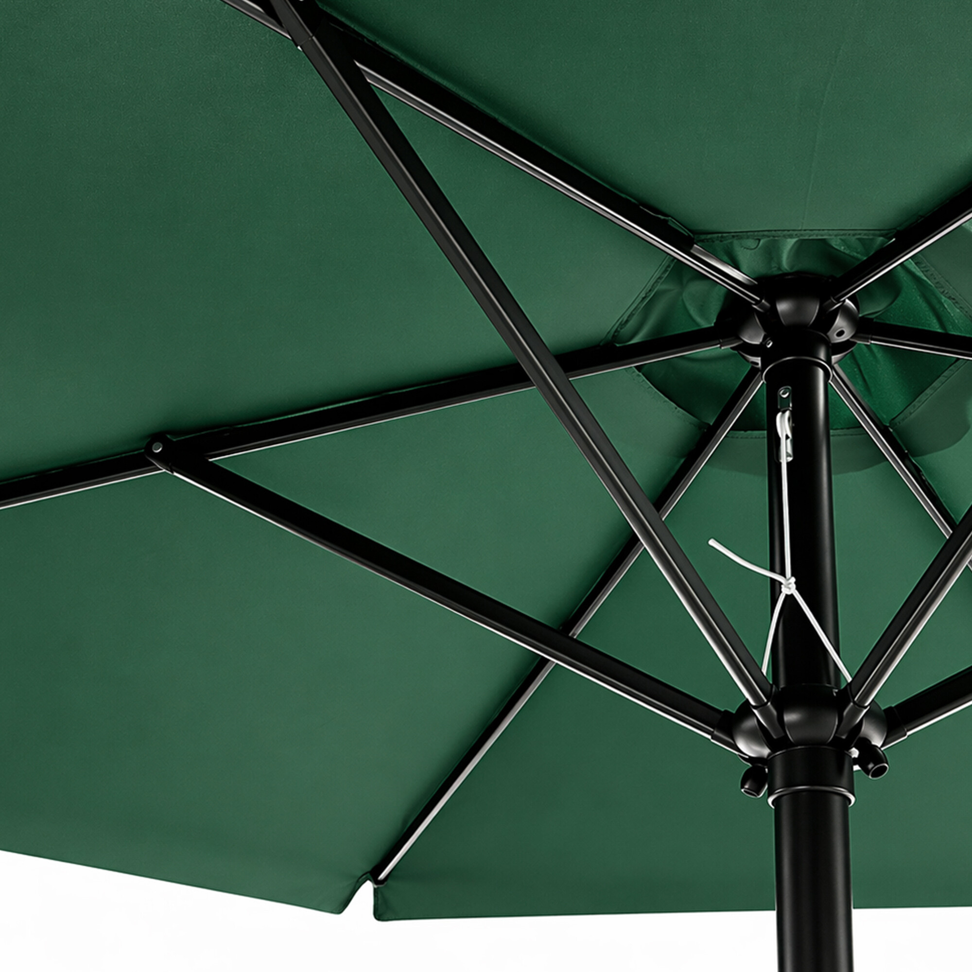 Konstrukcia slnečníka je vyrobená z kvalitného hliníka, ktorý vyniká svojou pevnosťou a zároveň nízkou hmotnosťou. Oproti klasickej oceli je hliníkový slnečník odolnejší voči korózii, čo z neho robí ideálne riešenie pre dlhodobé vonkajšie použitie. Stabilitu celej konštrukcie zabezpečuje robustná stredová tyč s priemerom 48 mm spolu s pevnými rebrami, vďaka ktorým slnečník drží tvar a odoláva bežným poveternostným podmienkam.