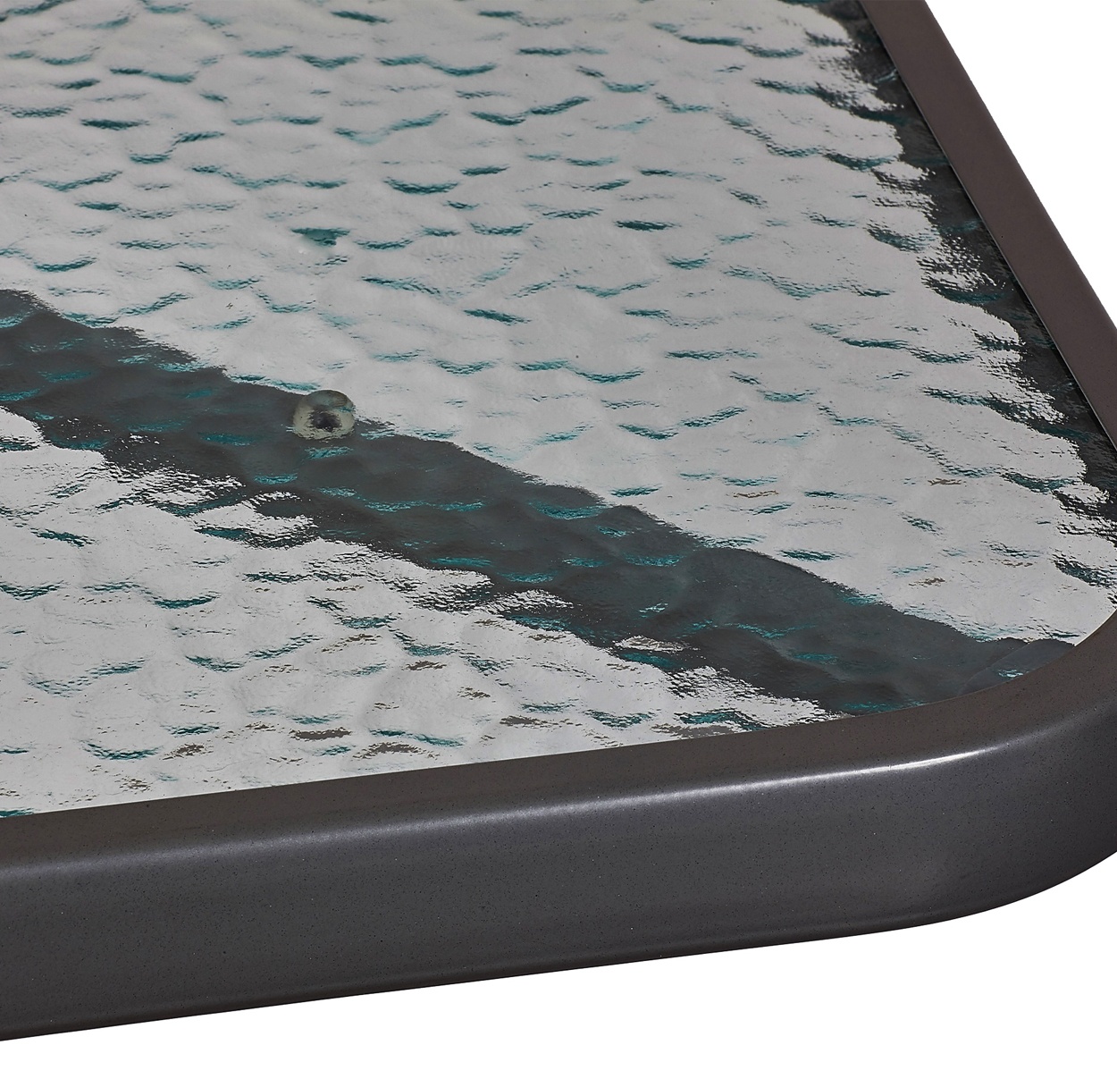 Záhradný stôl s pevným kovovým rámom a sklenenou doskou, vhodný do záhrad, terasy, kaviarne, altánky, balkóny.