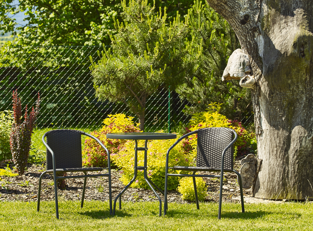 Možno ho doplniť stoličkami v podobnom dizajne a vytvoriť tak krásny záhradný set.