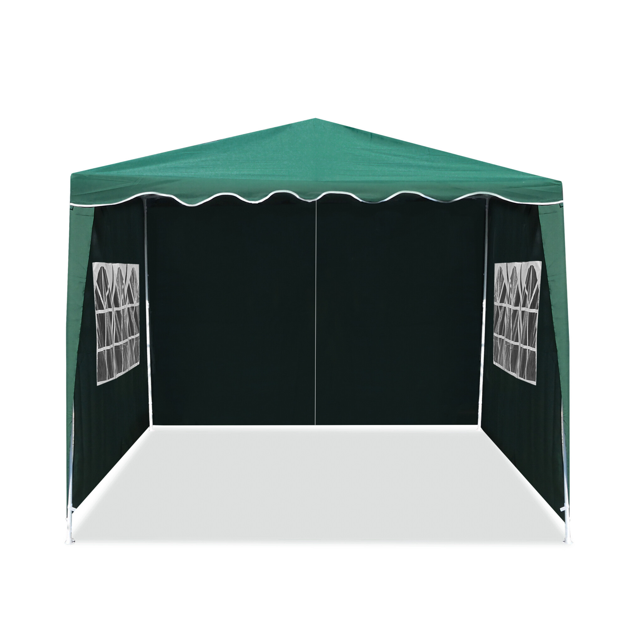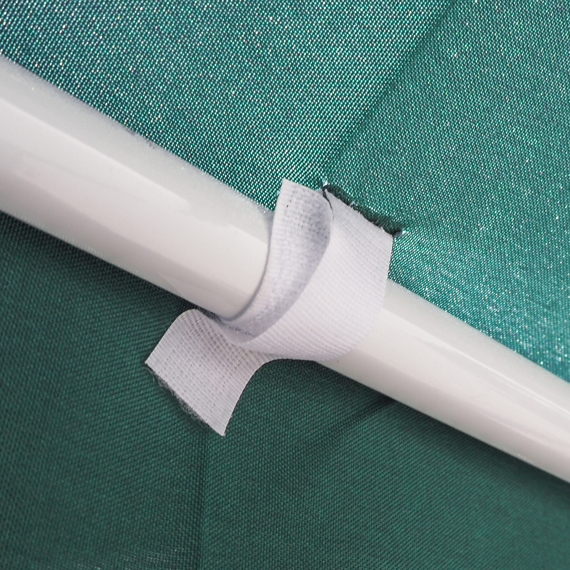 Tento materiál je ľahko udržiavateľný a dlhodobo si zachováva svoj vzhľad a funkčnosť.Altán je vybavený tromi bočnými stenami, ktoré sa pripevnia na konštrukciu suchým zipsom. Dve bočnice majú priehľadné okienka, tieto okienka umožňujú dostatok prirodzeného svetla vnútri altánku.
