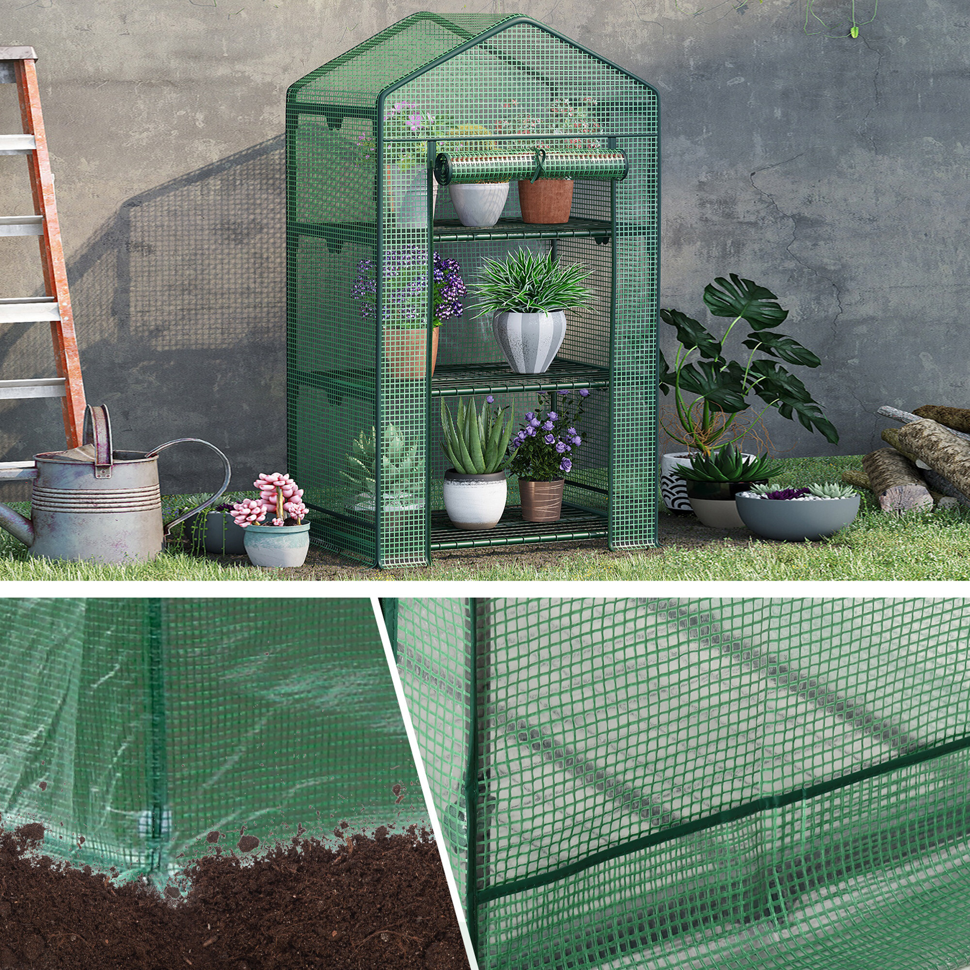 Fóliovník je vybavený tromi policami, má rolovacie dvere a ľahkú konštrukciu, takže ho môžete ľahko premiestniť podľa potrieb.