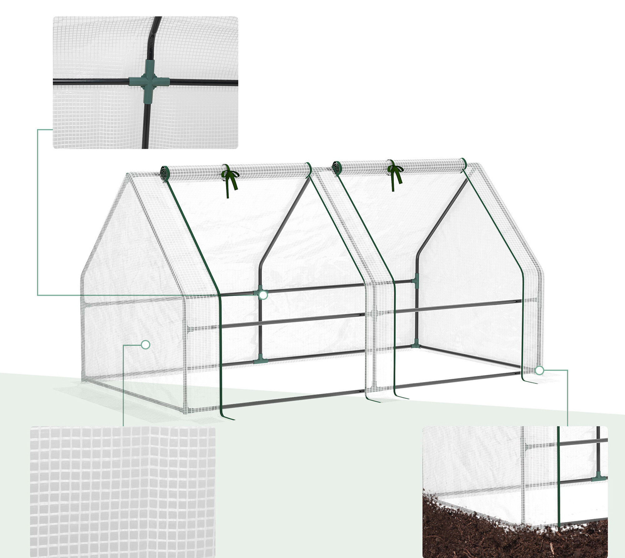 Fóliovník je ľahký, takže ho môžete ľahko premiestniť podľa potrieb. Má rolovacie okná s dvojitým zipsom pre jednoduchšie vetranie.