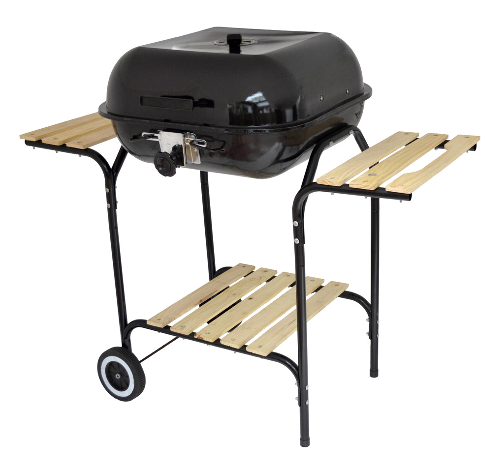Súčasťou grilu sú aj 2 drevené odkladacie poličky po stranách a 1 pod grilom.Výšku grilu možno ľahko nastaviť.