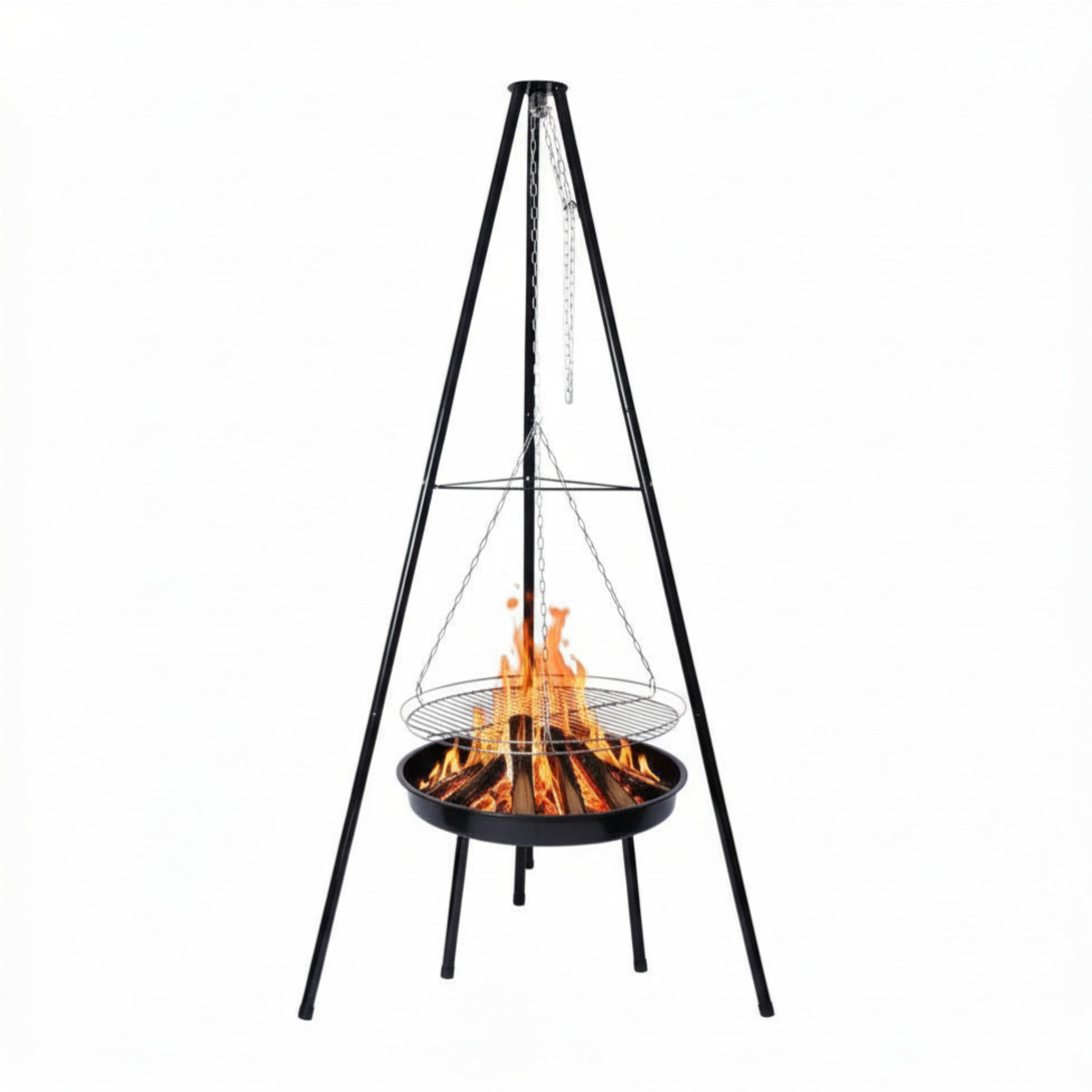 Ak máte radi kempovanie a varenie v klasickom kotlíku, bude sa vám hodiť táto trojnožka, s pomocou ktorej zavesíte rošt alebo kotlík nad ohnisko. Na zavesenie slúži háčik na retiazke. Vďaka použitému materiálu má trojnožka veľmi dlhú životnosť.
