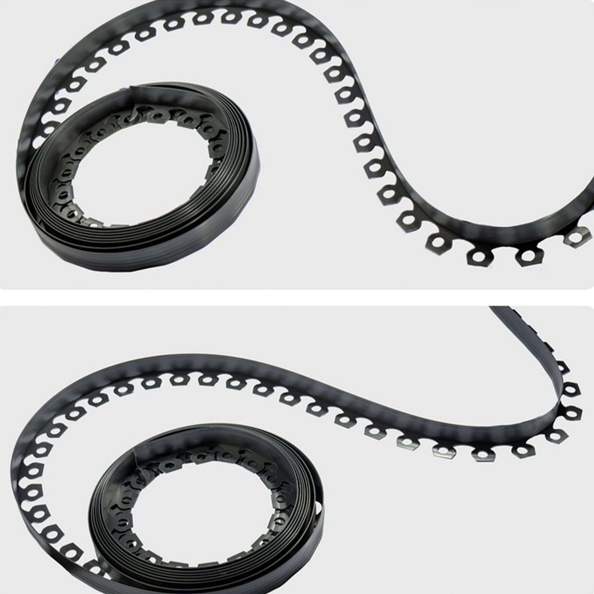 Ak je potrebná kratšia dĺžka, čierny plastový obrubník možno jednoducho skrátiť zastrihnutím. Pre rovné úseky sa odporúča použiť viac kotiev, aby bol obrubník stabilný a nedochádzalo k nežiaducemu pruženiu.