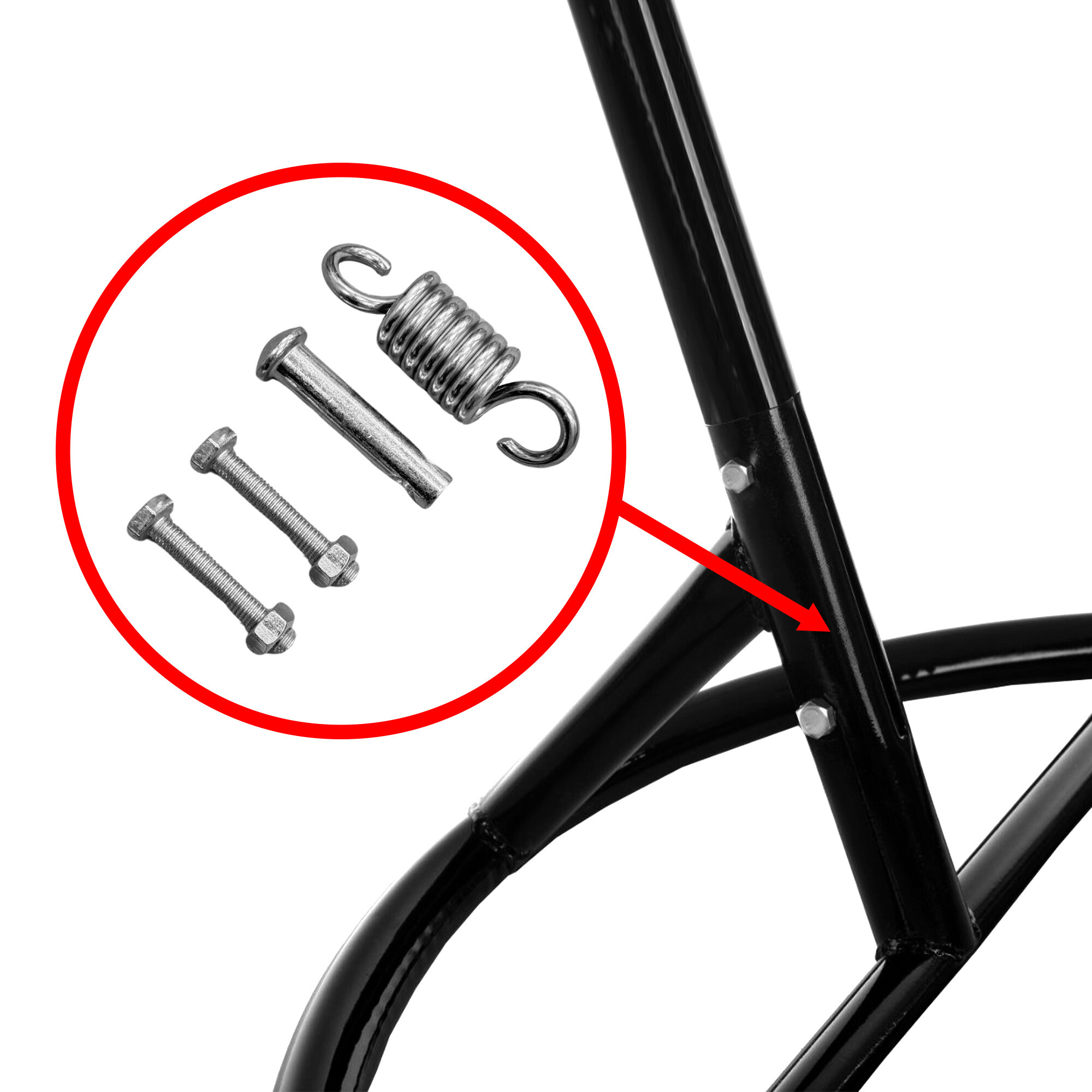 Závesné kreslo so stabilnou kovovou konštrukciou a sedacou časťou ozdobne vypletenou z umelého ratanu.Súčasťou závesného kresla sú aj pohodlné vankúše, ktoré sú odolné voči vode.