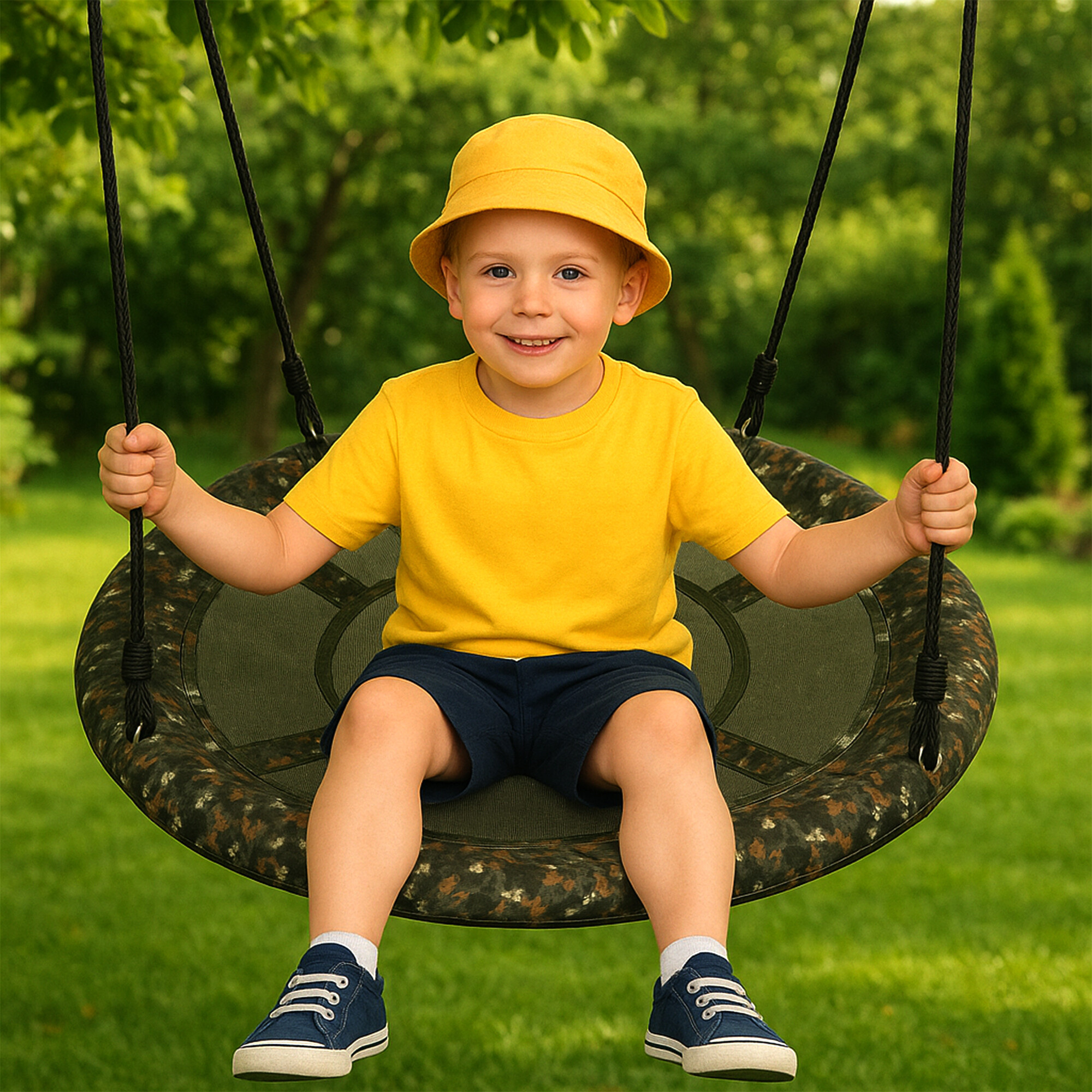 Rám je chránený penovým polstrovaním tak, aby bolo Vaše dieťa v bezpečí a zároveň malo pohodlie pri hojdání.Poťah hojdačky je vyrobený z Oxford tkaniny, ktorá sa vyznačuje vysokou trvanlivosťou a odolnosťou voči poveternostným vplyvom vrátane UV žiarenia.