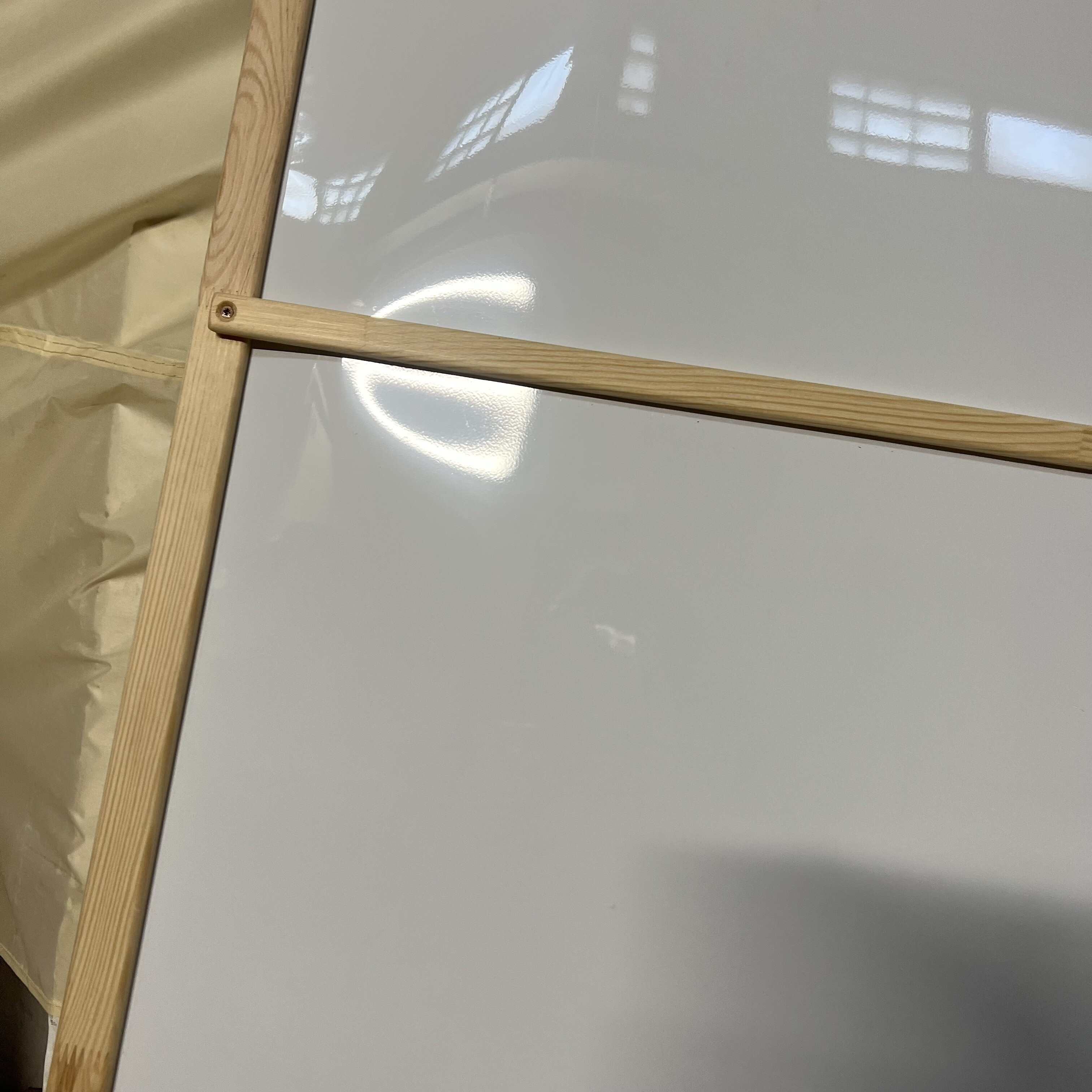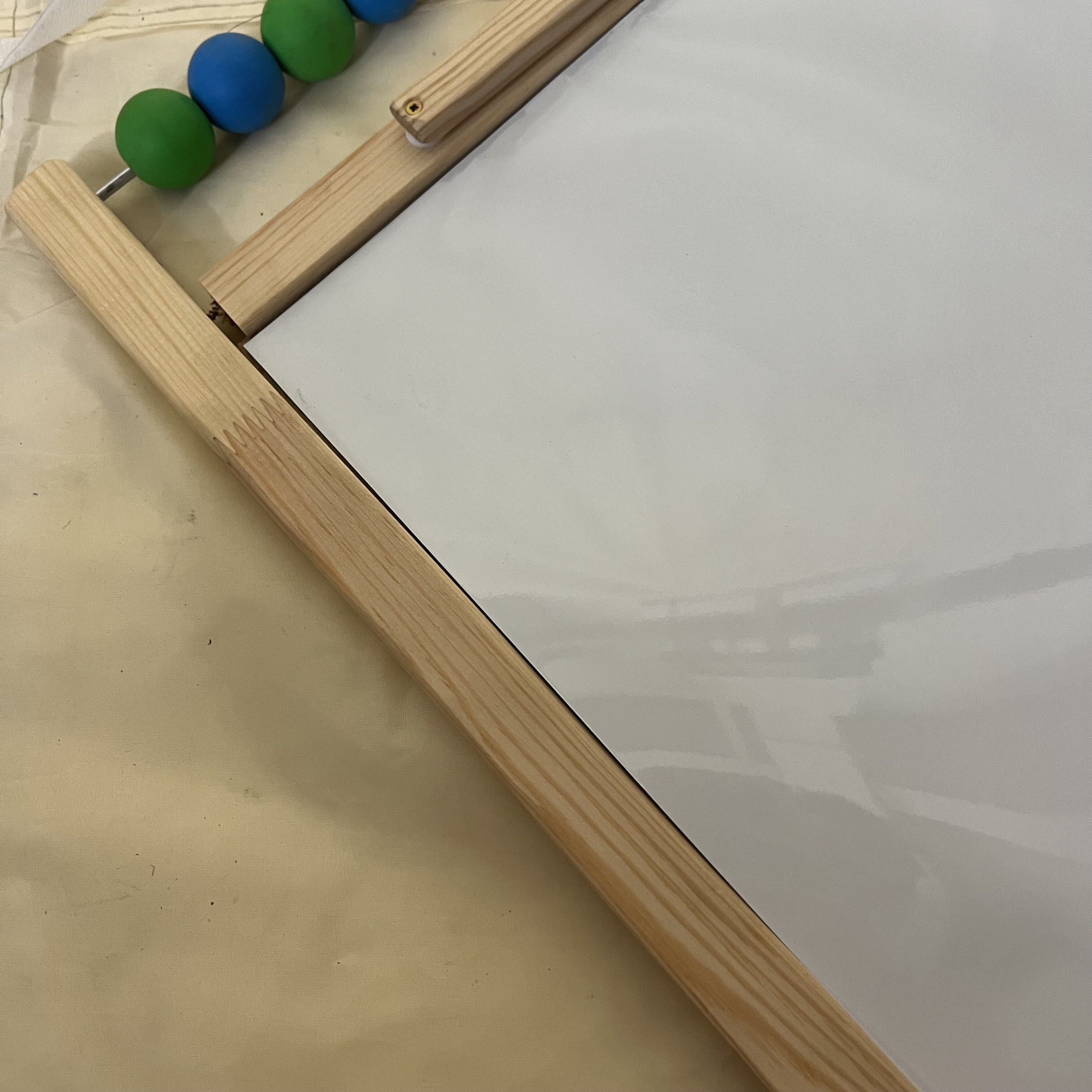 Tabuľa je mierne poškodená. Biela časť tabule je v mieste prehnutá a v jednom rohu nemožno spojiť (krátka latka).