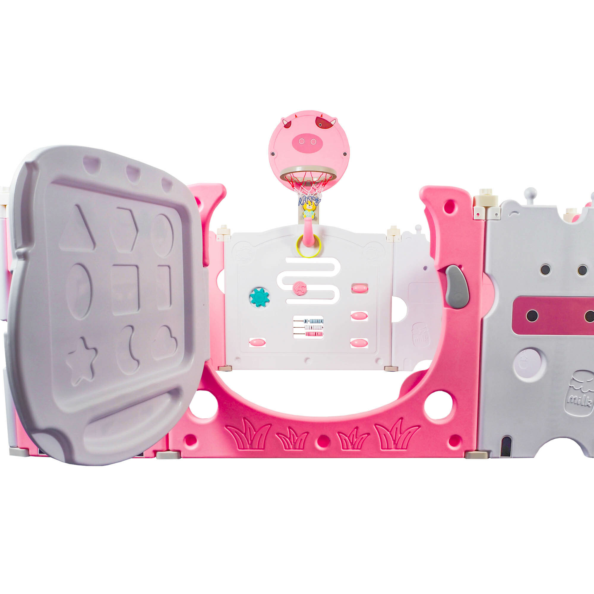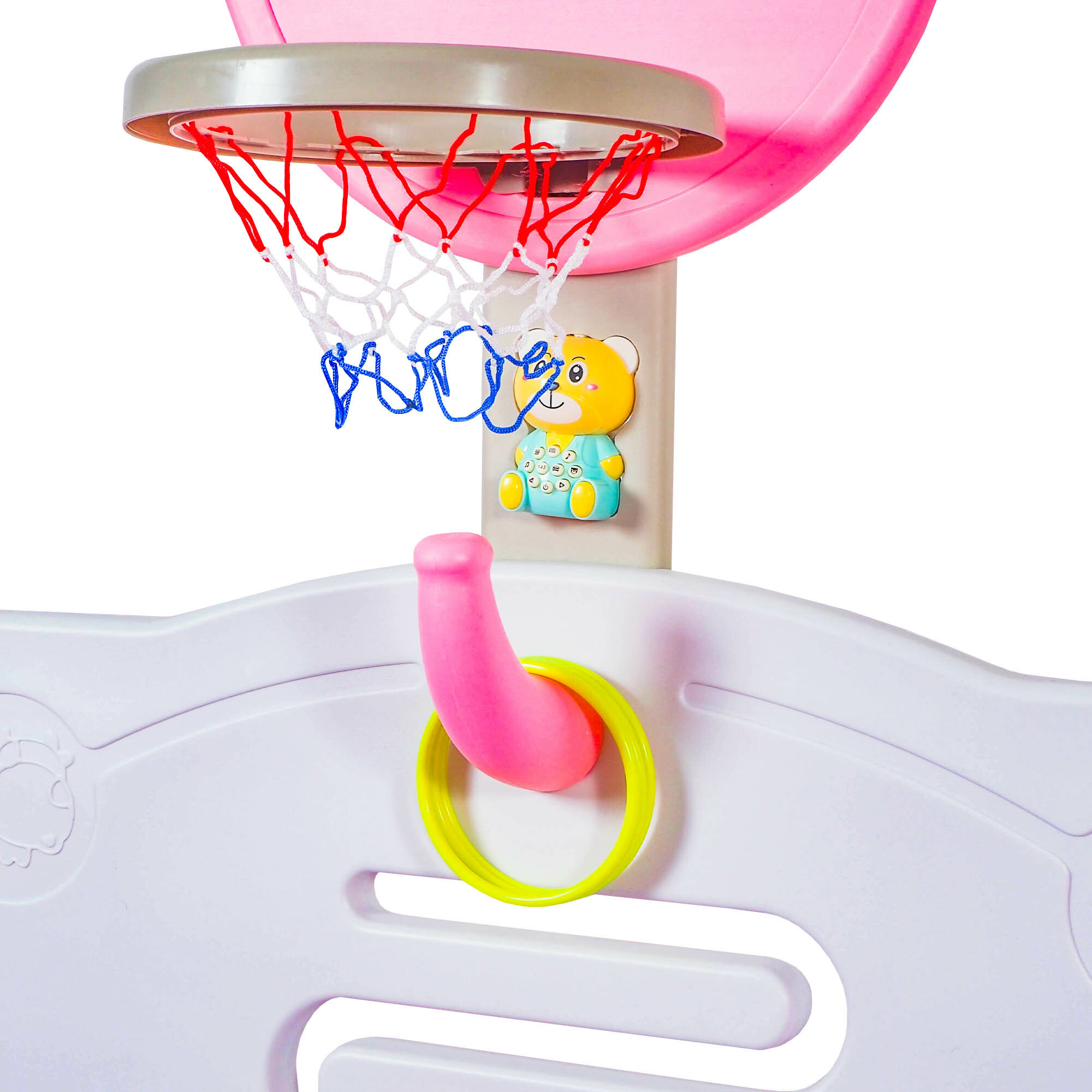 Plastová ohrádka nie je len obyčajným miestom na hranie. Je vybavená basketbalovým košom a loptou, čo deťom umožňuje rozvíjať svoje motorické zručnosti a koordináciu. Navyše je súčasťou ohrádky interaktívny medvedík so zvukovými efektmi, ktorý deti zabaví a podporí ich zmyslový rozvoj. Medvedík vydáva rôzne zvuky, ktoré stimulujú detskú zvedavosť a podporujú ich kognitívny vývoj.