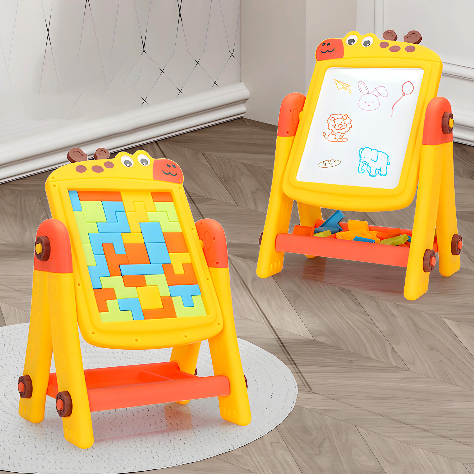 Druhá strana tabule je špeciálne navrhnutá na skladanie kociek. Deti si môžu stavať rôzne tvary a štruktúry, čo podporuje ich priestorovú predstavivosť a jemnú motoriku.