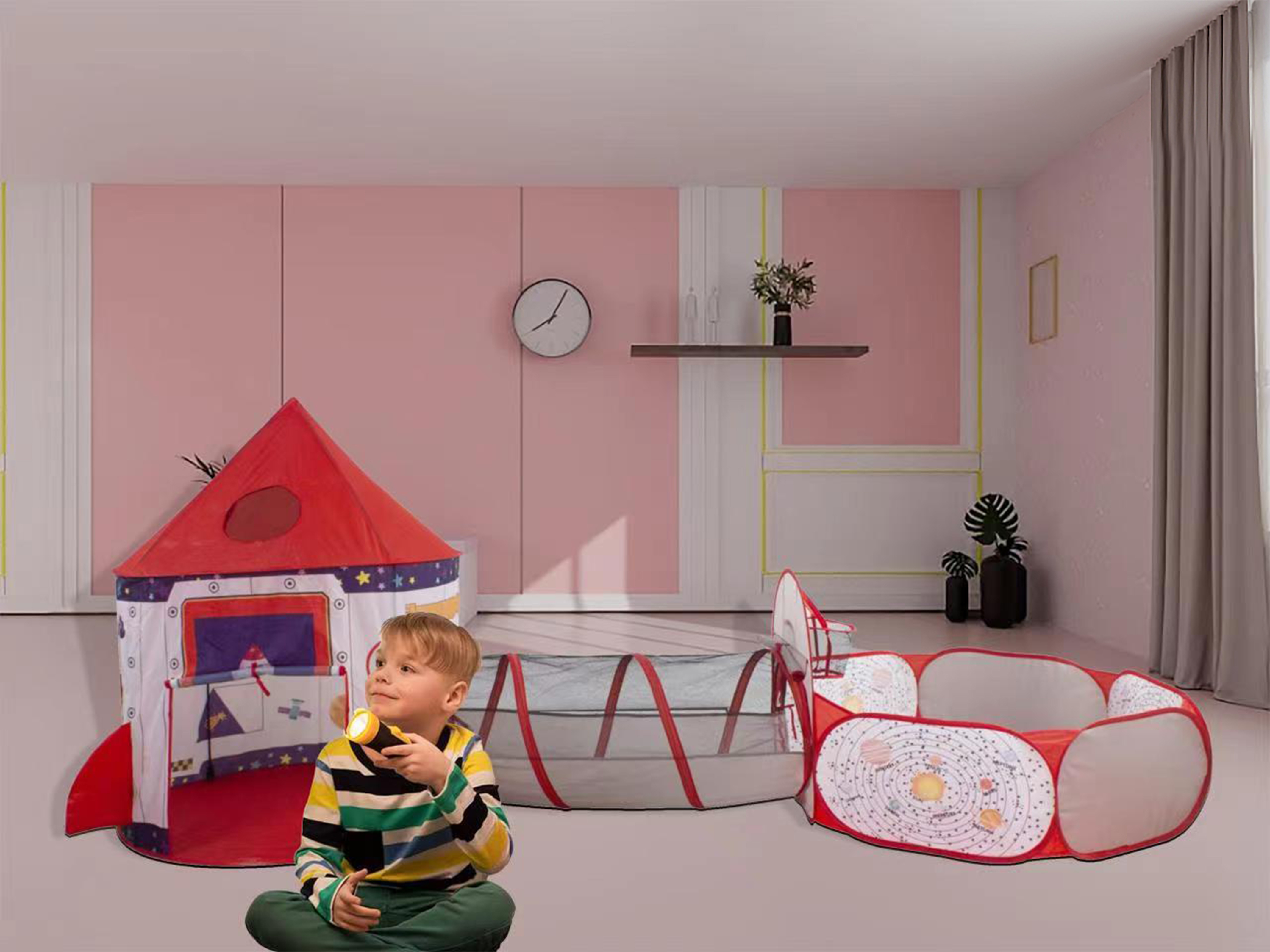 Trojdielny detský stan možno postaviť v interiéri aj exteriéri. Jednotlivé časti sa dajú hrať aj samostatne. Vetracie otvory zabezpečujú dobrú cirkuláciu vzduchu.