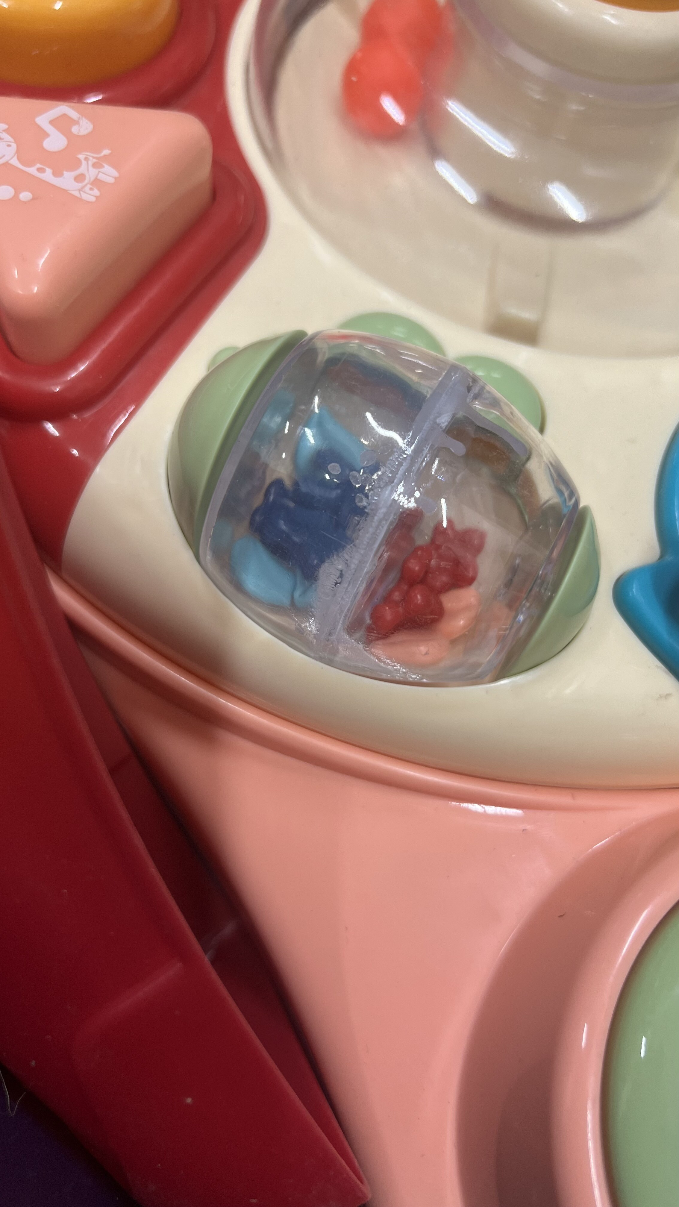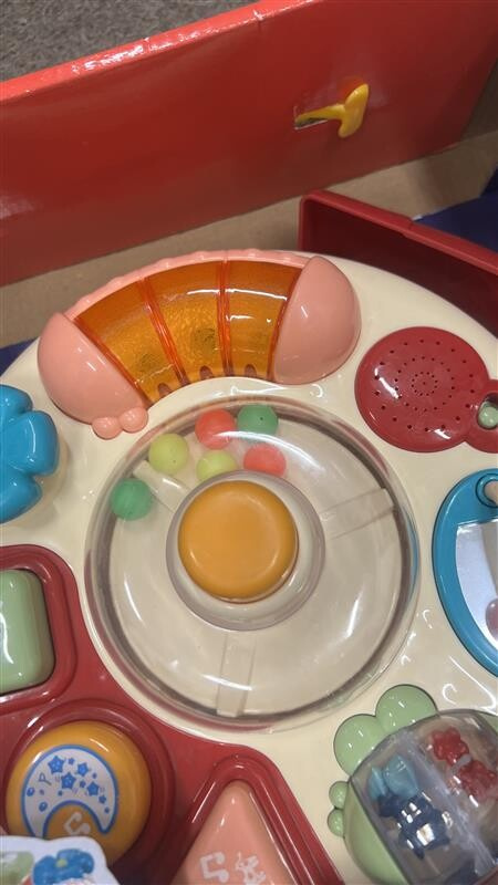 Každé tlačidlo a prvok na stolíku je navrhnutý tak, aby prinášal radosť a zároveň učil. Deti sa môžu tešiť na - hrkálku, zrkadielko, korálky, otočné kvetinkové tlačidlo, tlačidlá, ktoré vydávajú zvuky - zvieratiek, hudobných nástrojov a melódiami s uspávankami.