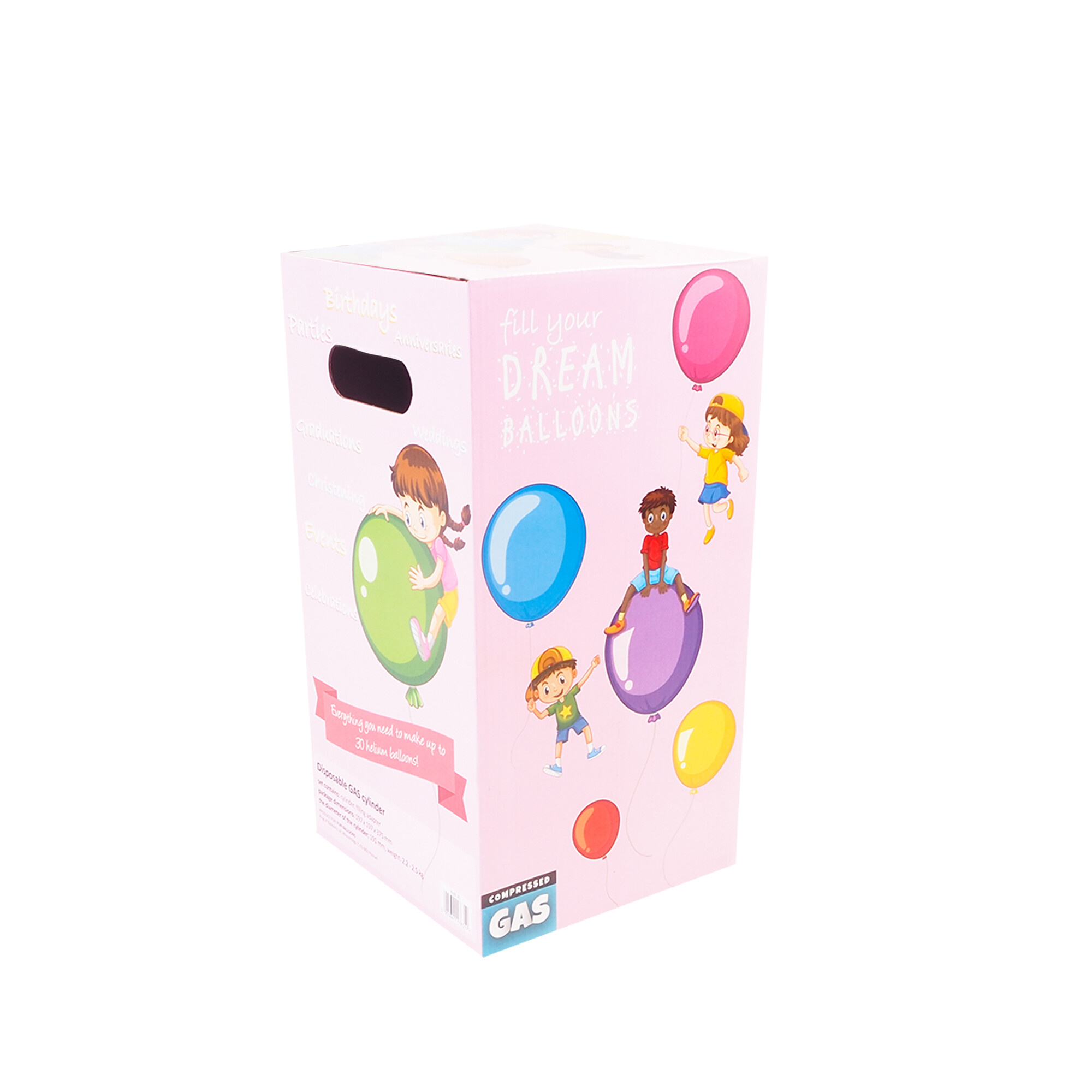 Praktická jednorazová bomba hélia, pomocou ktorej nafúknete až 30 balónikov rýchlo a jednoducho. Fľaša hélia je nevratná, slúži na jedno použitie, avšak balenie je recyklovateľné.