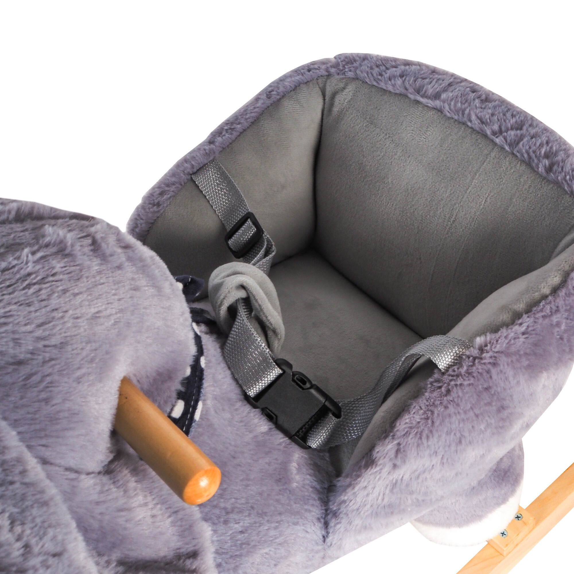 Hojdací slon je vyrobený z hebkého a príjemného plyšového materiálu, ktorý je jemný na dotyk. Pohodlné sedlo v tvare kresla je navrhnuté tak, aby poskytovalo maximálny komfort počas hojdania. Vaše dieťa sa bude cítiť ako v bavlnke.