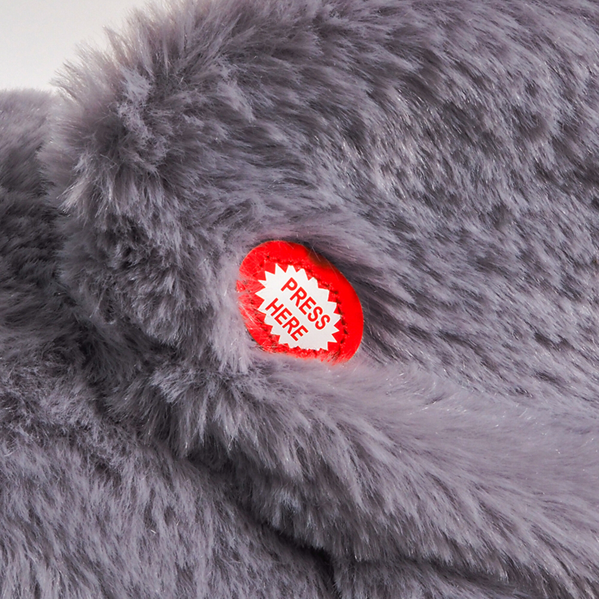 V uchu zvieratka je umiestnené tlačidlo, ktoré po stlačení začne hrať detskú uspávanku. Táto funkcia pridáva ďalší rozmer zábavy a pomáha rozvíjať zmyslové vnímanie vášho dieťaťa. Hudba je jemná a upokojujúca, čo je ideálne pre chvíle odpočinku a relaxácie.