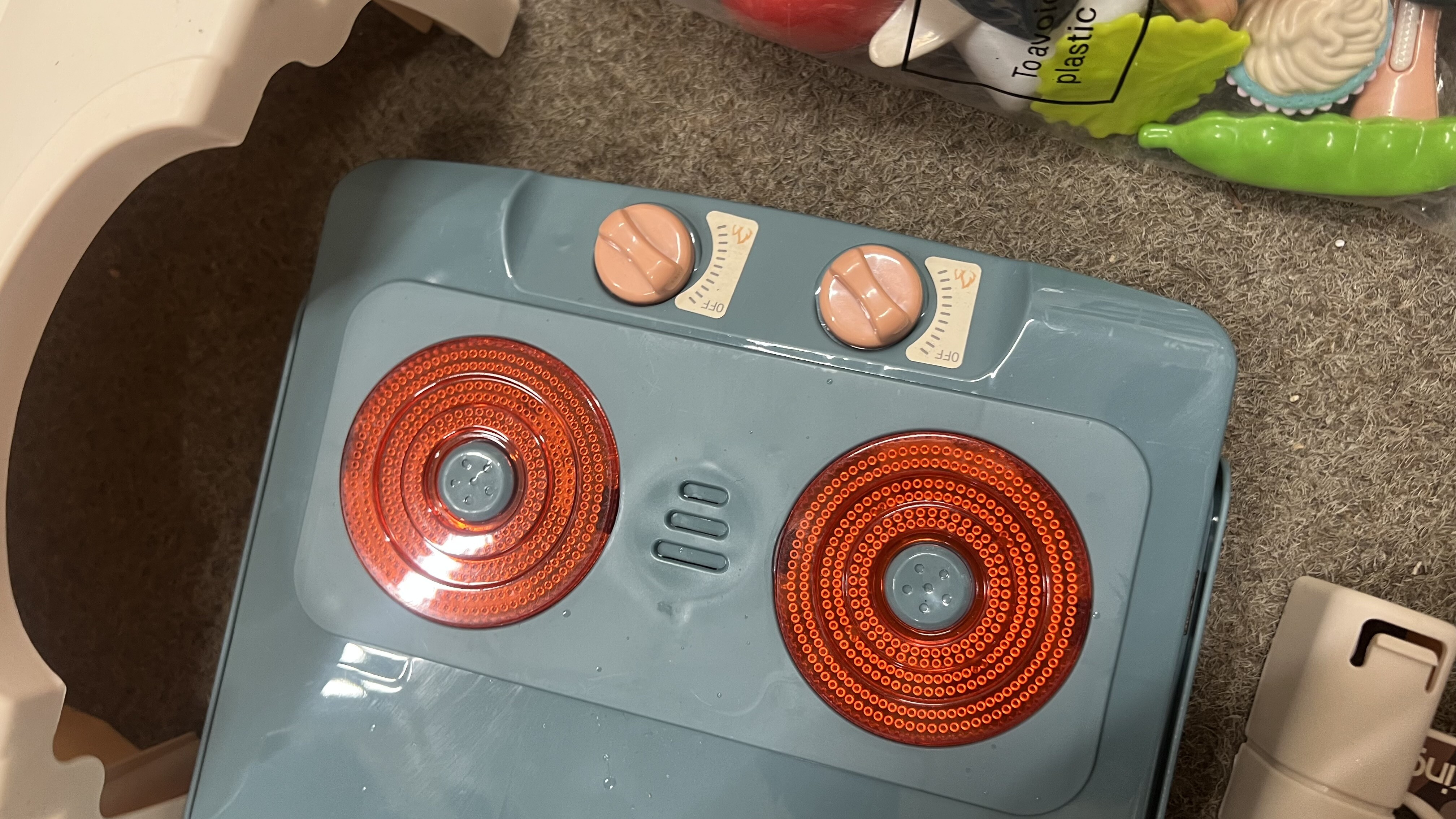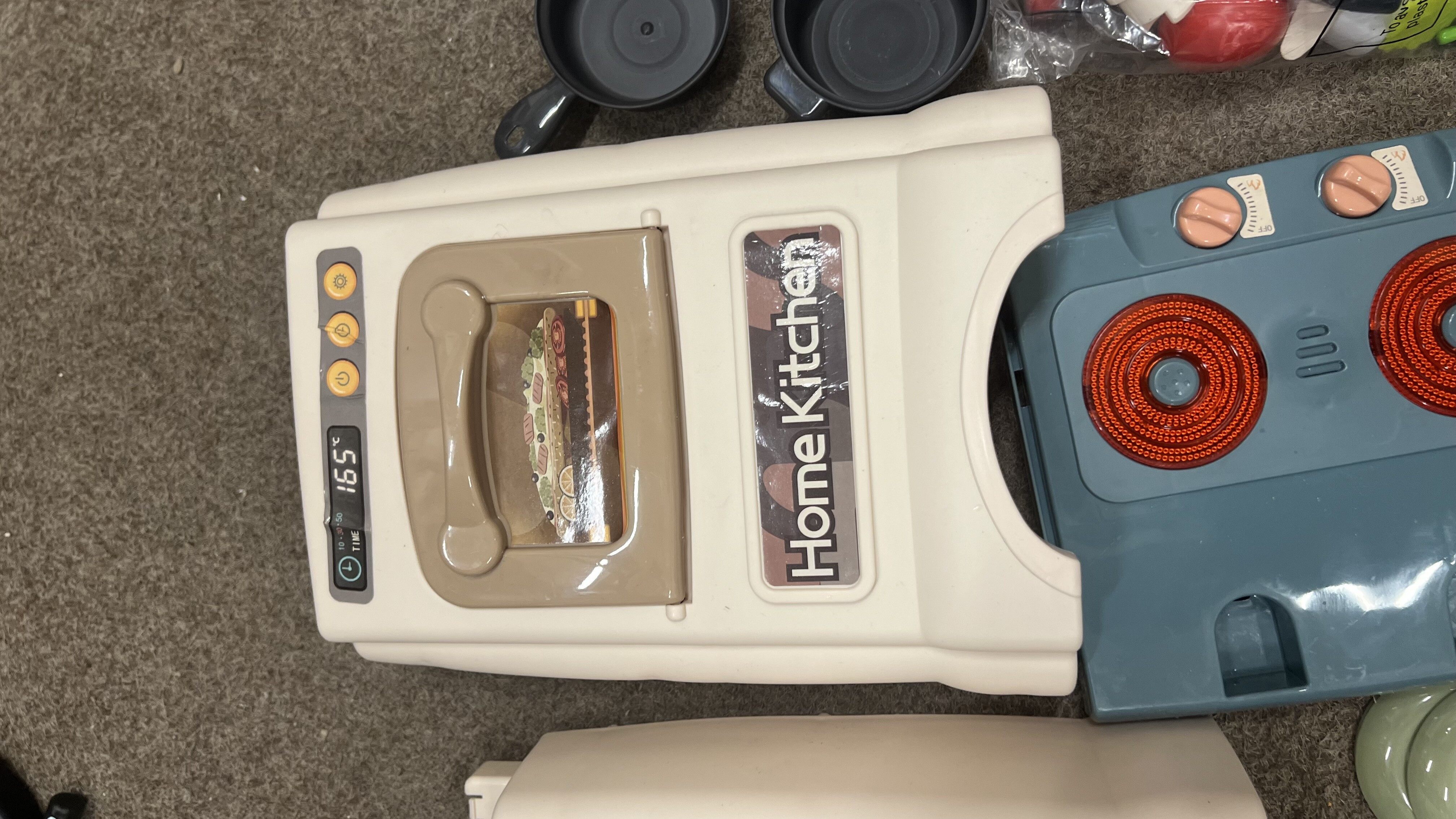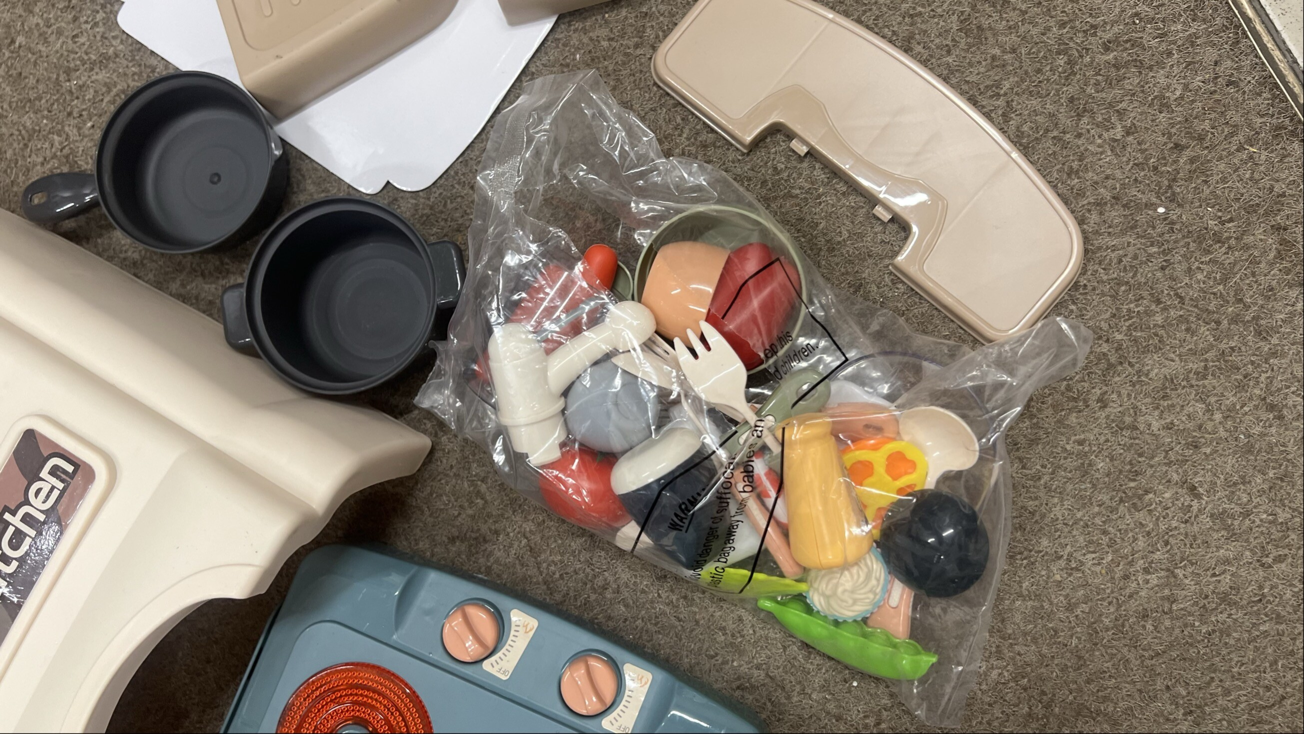 - Obsahuje množstvo rôzneho príslušenstva ako sú hrniec, panvička, pokrievky, taniere, náradie, jedlo a pod.
