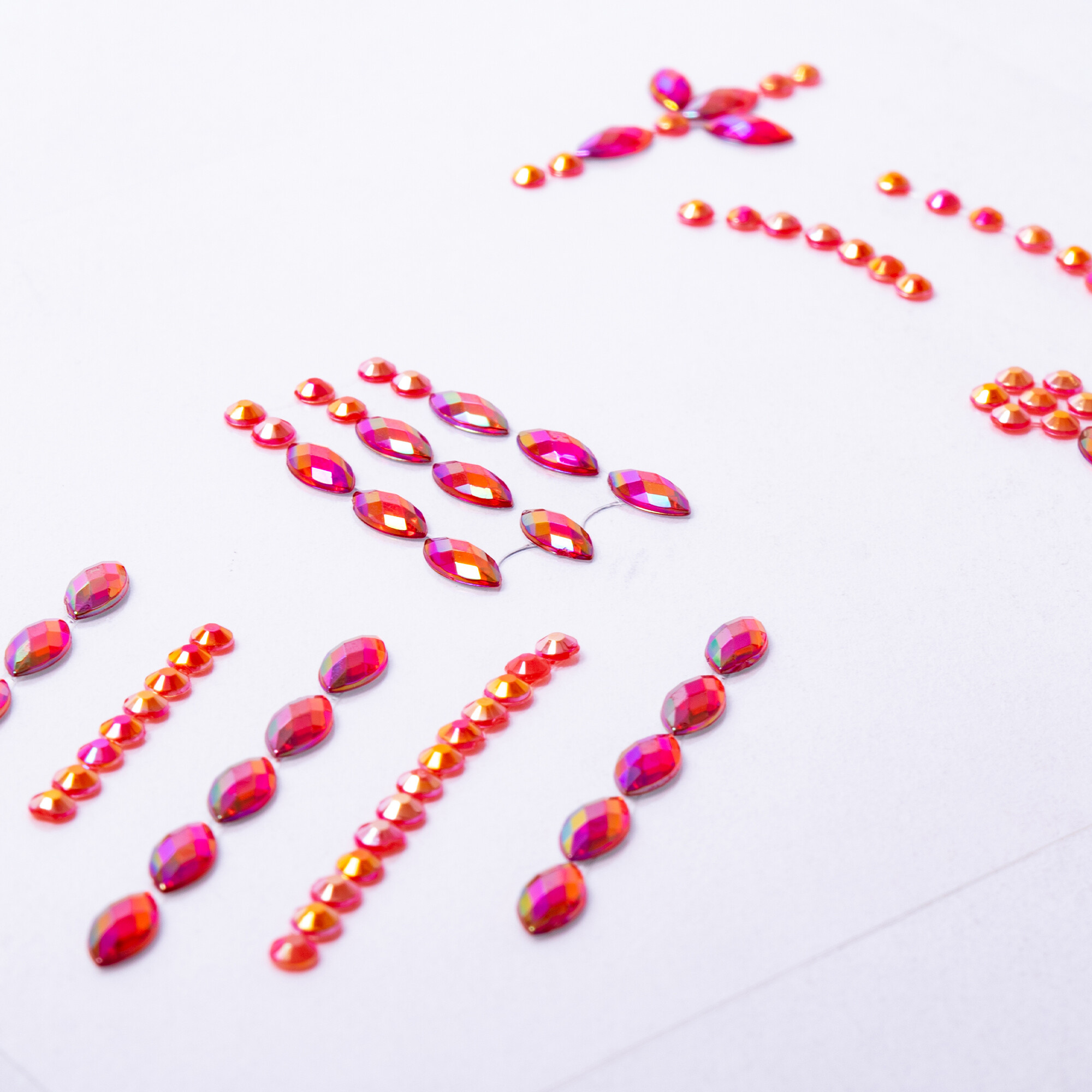 Použitie našich kamienkov je veľmi jednoduché. Stačí ich odlepiť z podkladového papiera a prilepiť na požadované miesto. Môžete ich použiť na tvár, vlasy, nechty alebo akúkoľvek inú časť tela. Kamienky pevne držia na mieste, ale zároveň ich možno ľahko odstrániť bez poškodenia pokožky alebo vlasov. Vďaka tomu môžete meniť svoj vzhľad podľa nálady a príležitosti.