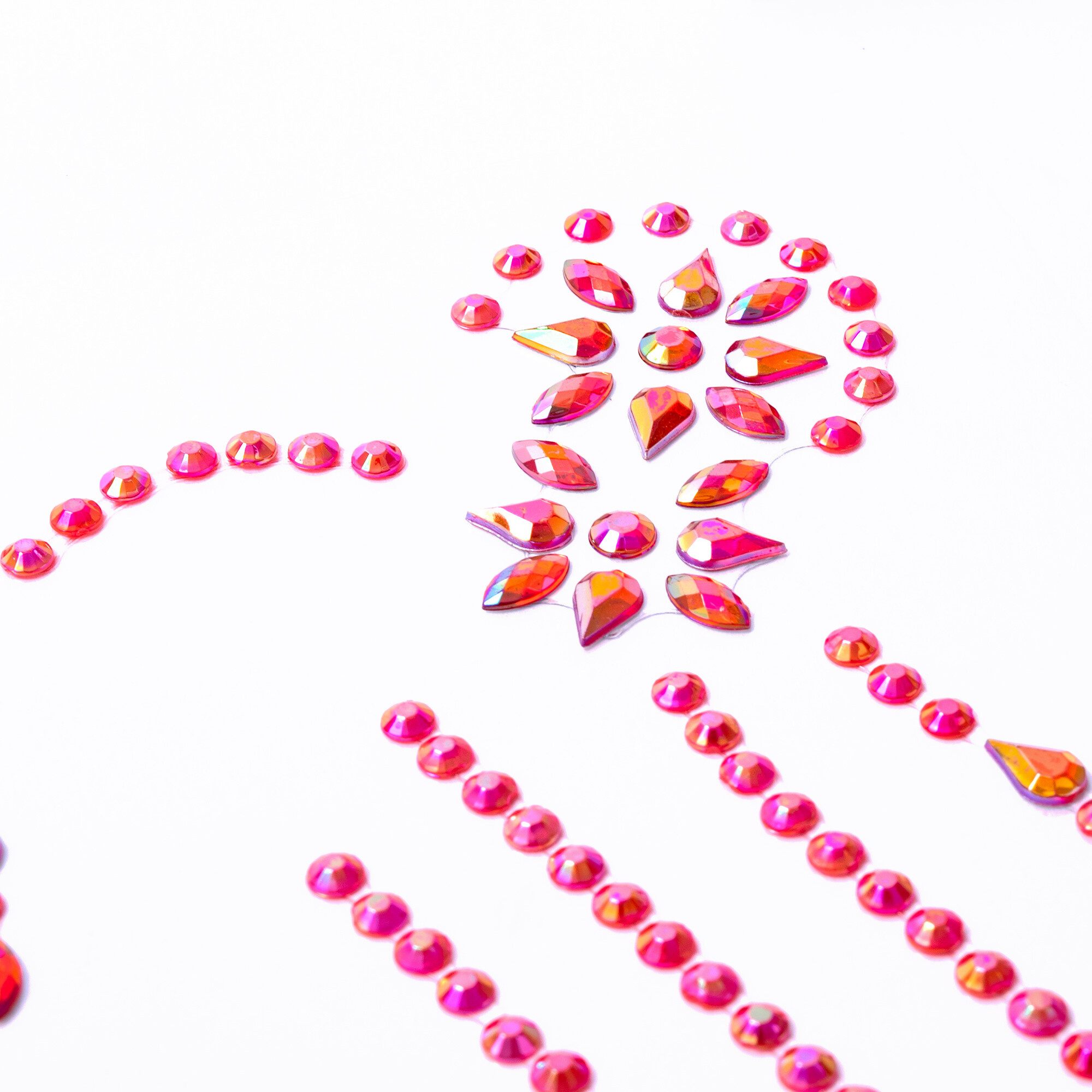 Použitie našich kamienkov je veľmi jednoduché. Stačí ich odlepiť z podkladového papiera a prilepiť na požadované miesto. Môžete ich použiť na tvár, vlasy, nechty alebo akúkoľvek inú časť tela. Kamienky pevne držia na mieste, ale zároveň ich možno ľahko odstrániť bez poškodenia pokožky alebo vlasov. Vďaka tomu môžete meniť svoj vzhľad podľa nálady a príležitosti.