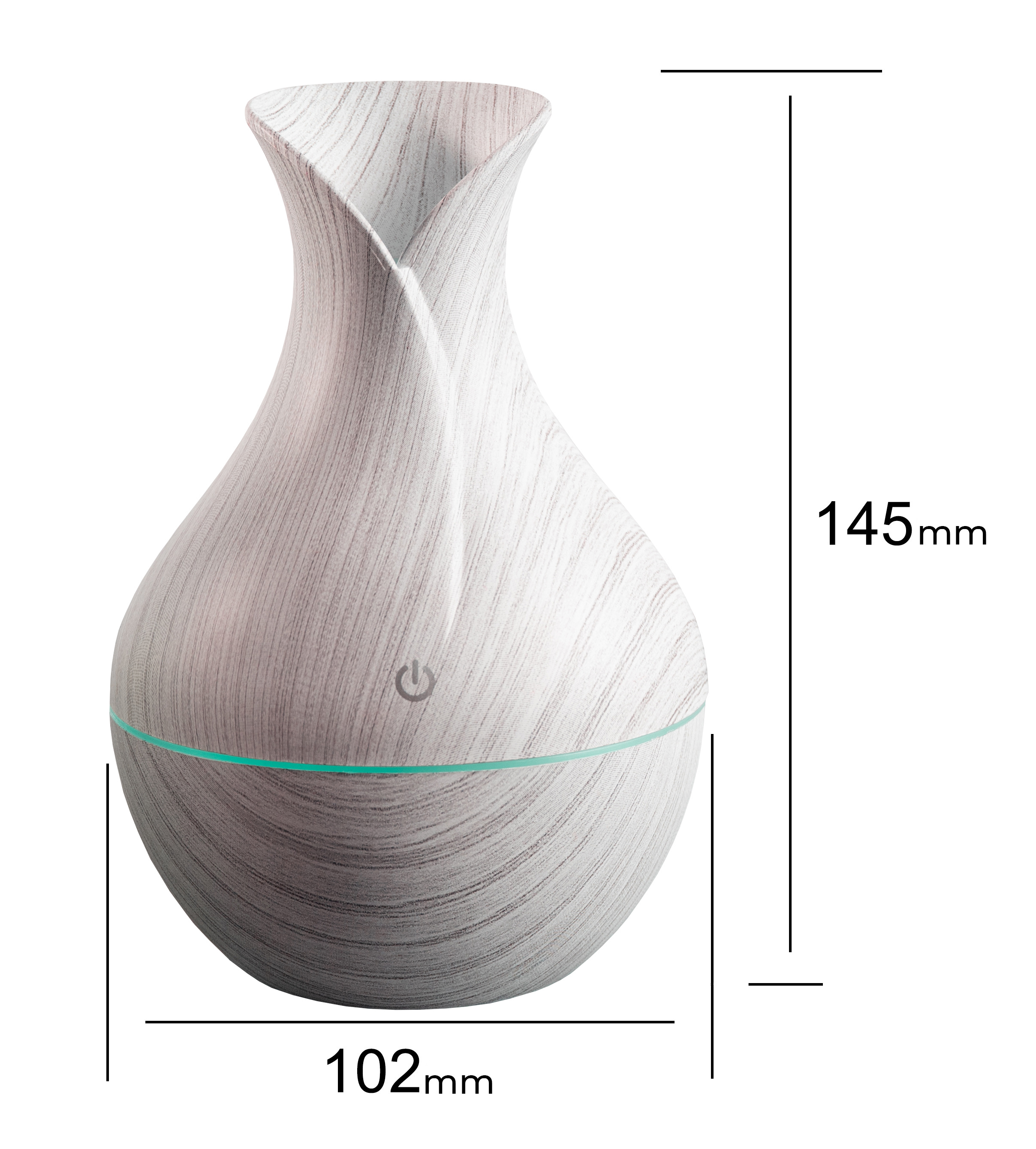 Nádobka je určená na 130 ml vody, do ktorej stačí pridať niekoľko kvapiek esenciálneho oleja, ktorý musí byť 100 % prírodný a plne rozpustný.
