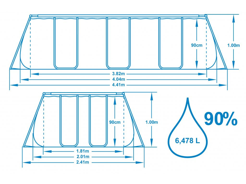 Špecifikácie bazéna Bestway Power Steel Frame 4,04 x 2,01 x 1 m 56441 + Kartušová filtrácia.
