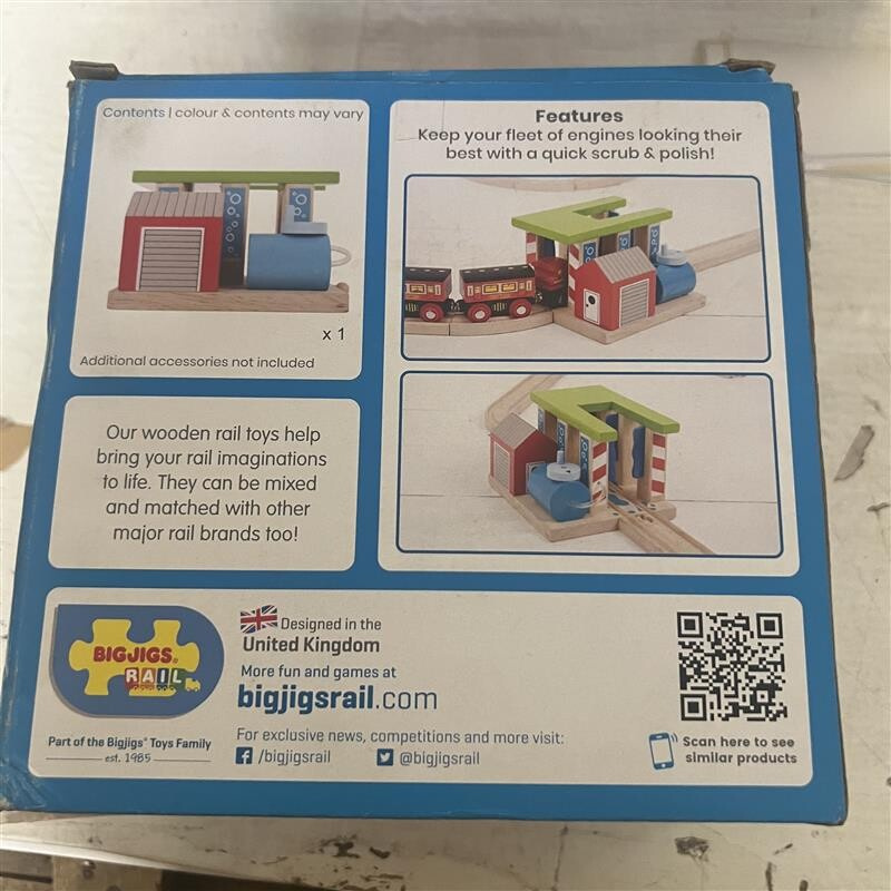 Táto vlaková umývačka je ideálny doplnok akejkoľvek drevenej vláčkodráhy.Deti budú milovať jazdu vlakom cez toto zariadenie! Umývačka má otočné stĺpy, takže môžete jednoducho nastaviť, či bude vláčik len prechádzať alebo sa bude dotýkať čistiacich závesov.Súčasťou balenia nie je vláčik.Hlavné vlastnosti: Vláčikodráhy a ich príslušenstvo značky Bigjigs Rail je možné kombinovať so všetkými ďalšími drevenými vláčikodráhami na trhu.Vyrobené z kvalitných a zodpovedne získaných prírodných materiálov.Zodpovedá súčasným európskym bezpečnostným normám.Podporuje predstavivosť, obratnosť a koordináciu.