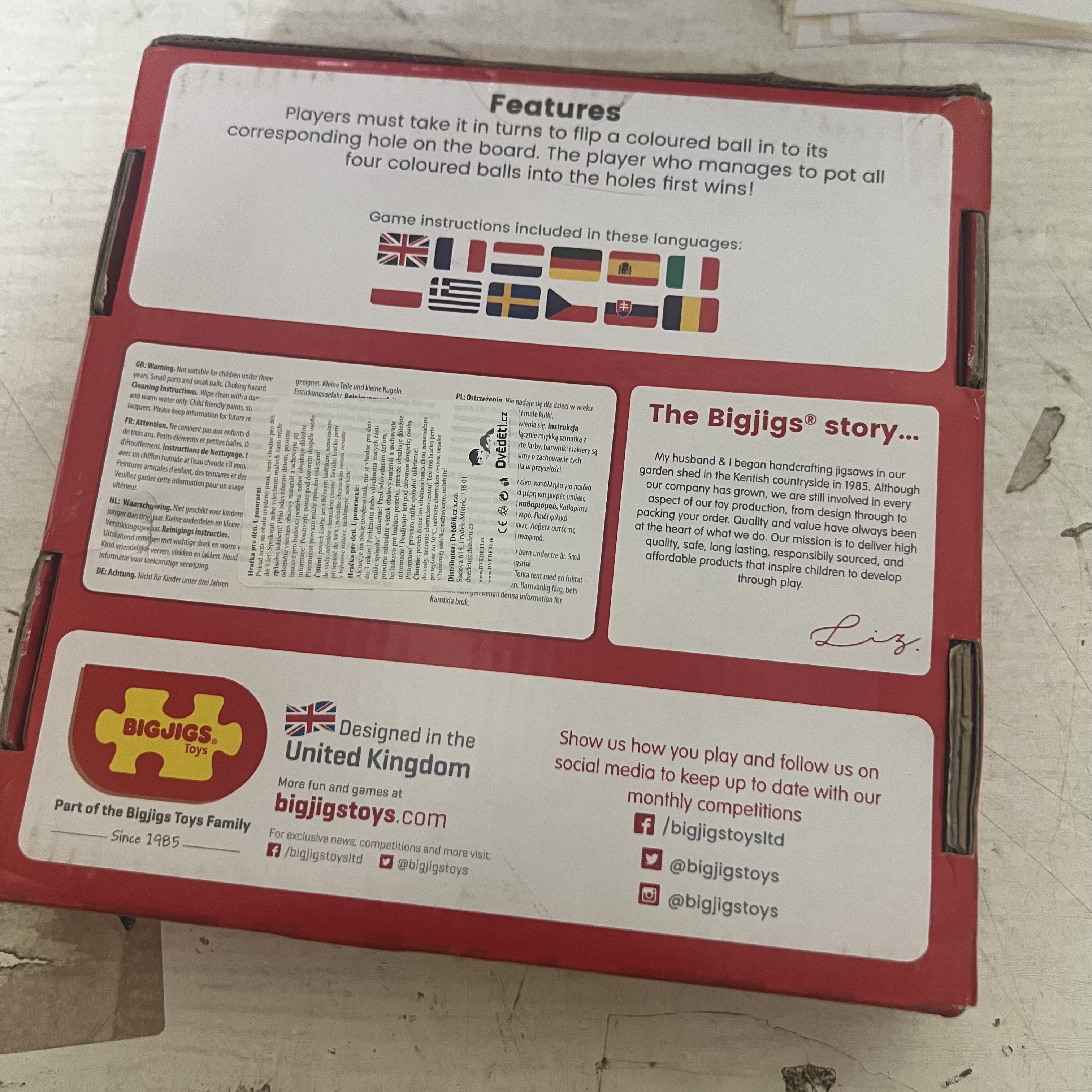 Hráči sa musia striedať tak, aby umiestnili farebnú guľu do zodpovedajúcej dierky na doske. Hráč, ktorý zvládne umiestniť všetky štyri farebné gule do dier, vyhrá! Hra môže byť hraná až 4 hráčmi so štyrmi rôznymi farbami na doske - červená, modrá, žltá a fialová. Skvelý spôsob, ako rozvíjať zručnosť sústredenia a pozorovania, a zlepšuje schopnosť počítať. Podporuje interaktívne hracie sekcie a rozvíja slovnú zásobu. Vyrobené z vysoko kvalitných, zodpovedne dodávaných materiálov. Zodpovedá súčasným európskym bezpečnostným normám.Hlavné vlastnosti: podporuje sústredenie a presnosť hra pre až 4 hráčov drevená obdoba klasického klobúčika hopRozmery: 17,3x17,3x3 cm