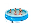 Nadzemný kruhový rodinný záhradný bazén, od talianskej firmy Bestway.Bazén je samonosný, stačí iba nafúknuť horný prstenec a bazén napustiť vodou. Stúpajúci stĺpec vody bazén sám postaví.