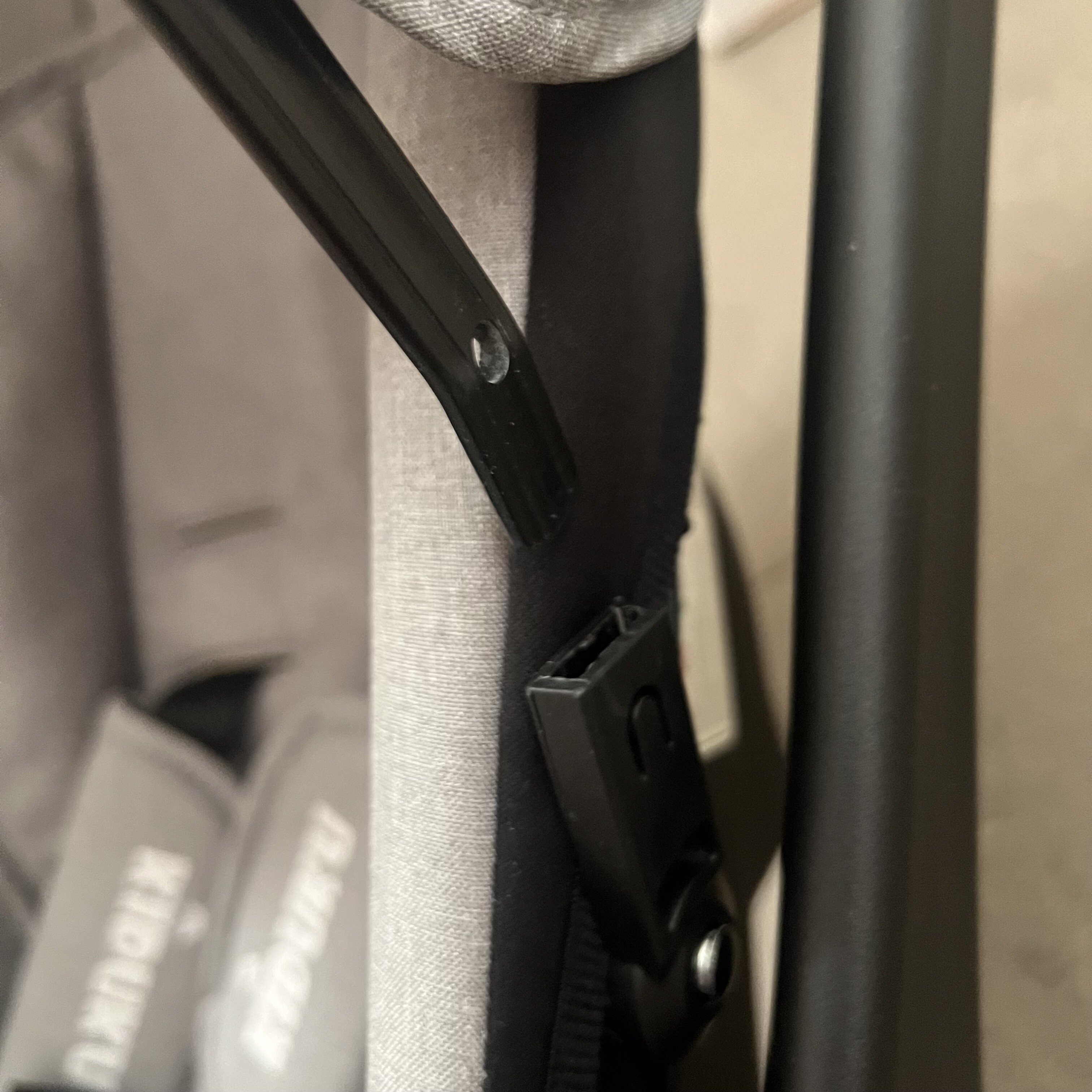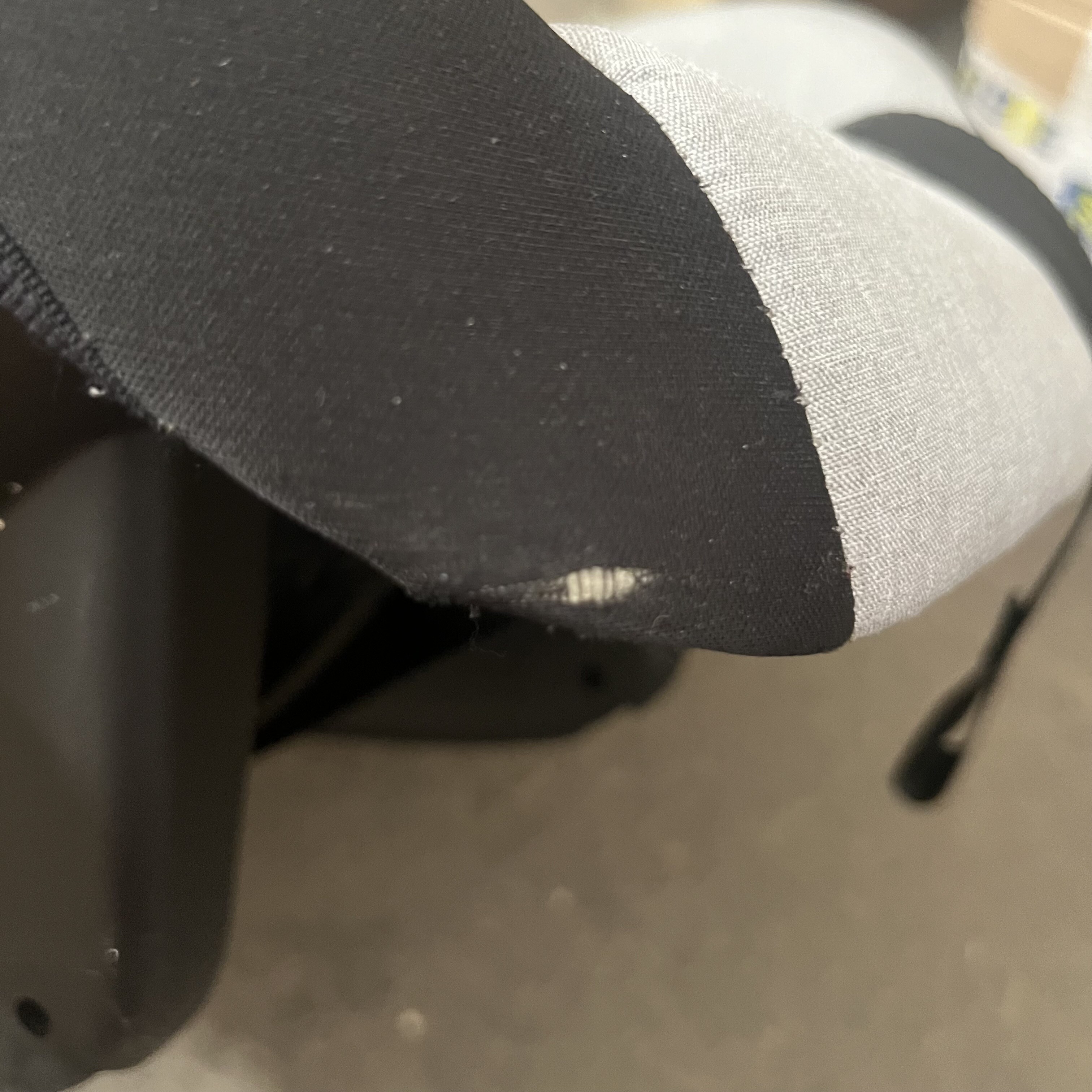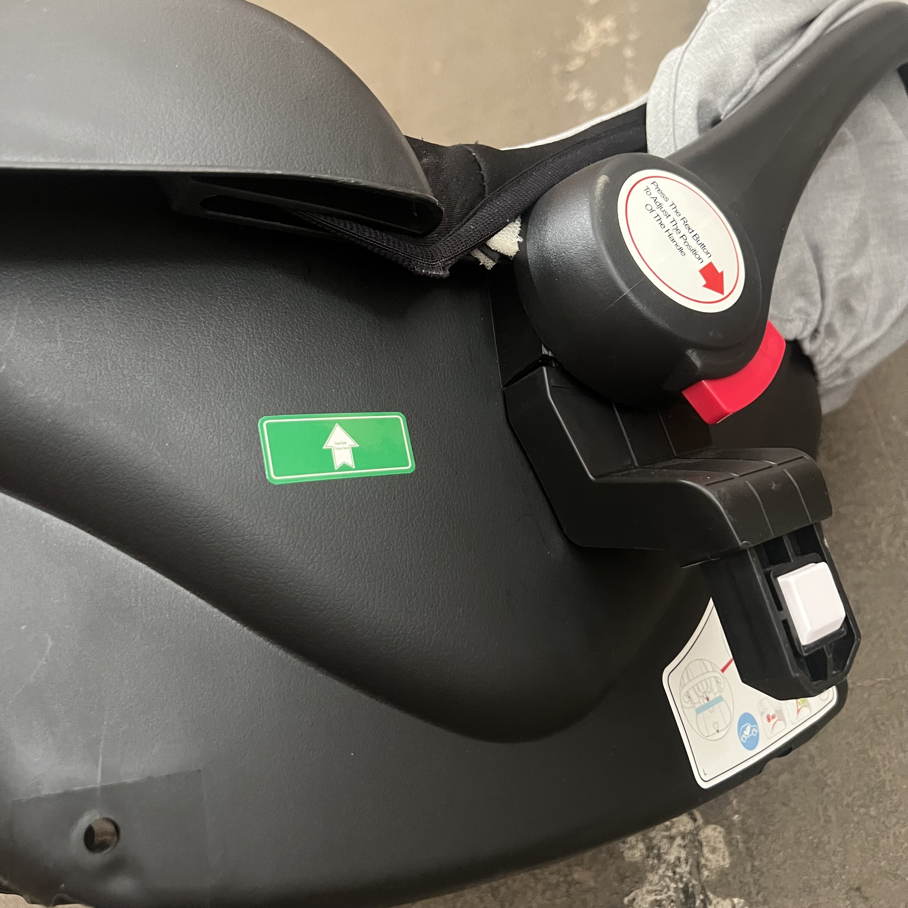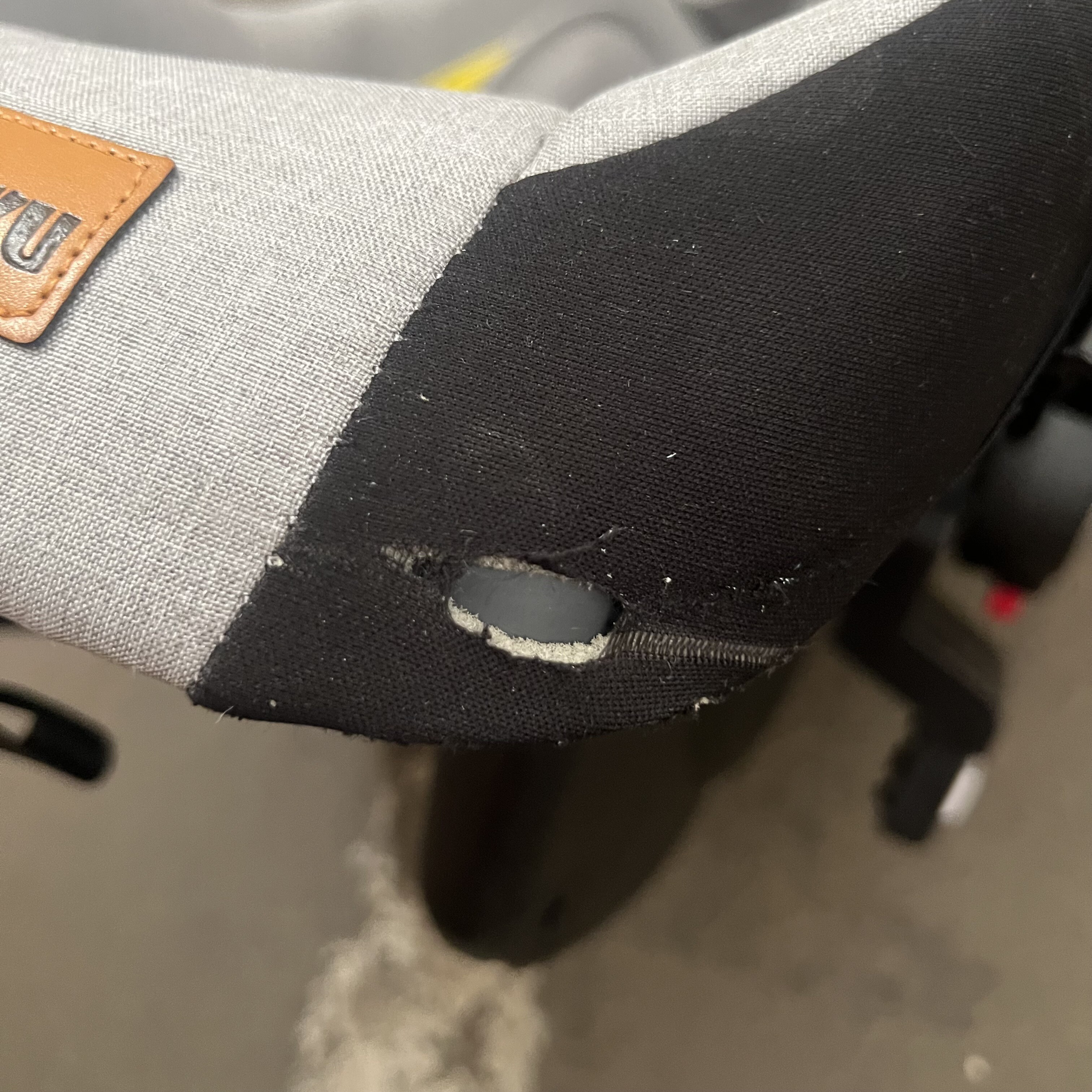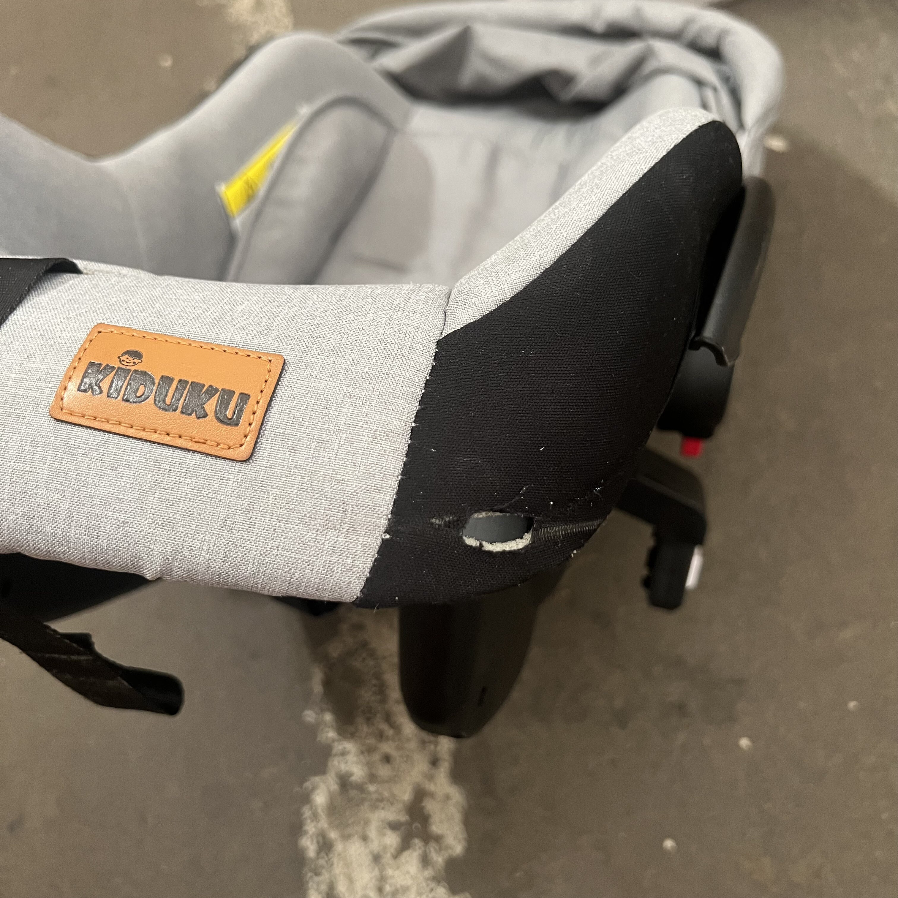 Autosedačka má poškodený materiál na oboch rohoch, strieška na jednej strane nejde úplne zacvaknúť a nedrží zaistená.