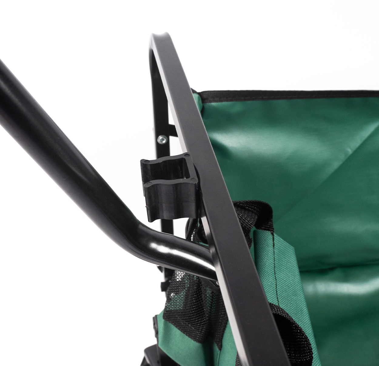 Vozík sa dá ľahko premiestňovať pomocou tyče na prednej strane. Na prednej strane vozíka nájdete aj dve sieťované vrecká na uloženie menších predmetov.