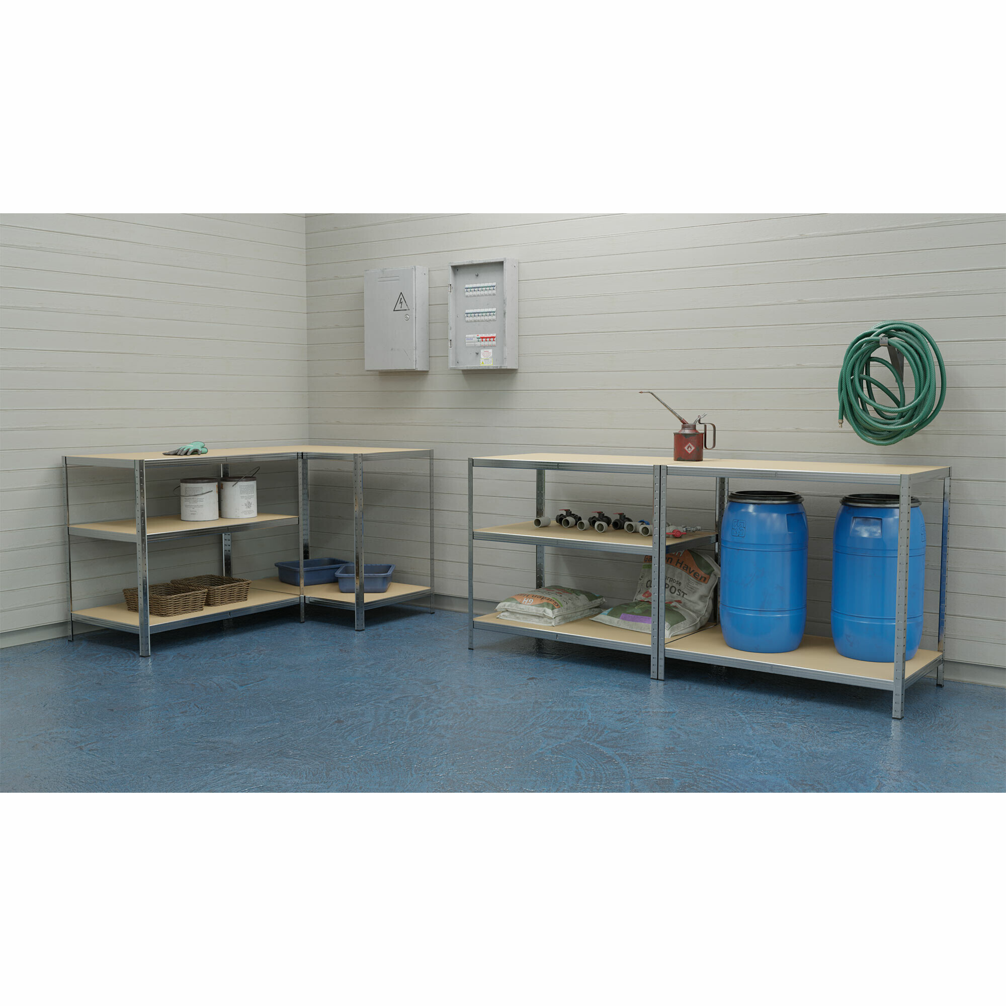 Tento kovový regál s MDF policami nájde využitie všade tam, kde je potrebné prehľadne a bezpečne uskladniť vybavenie, zásoby alebo náradie.