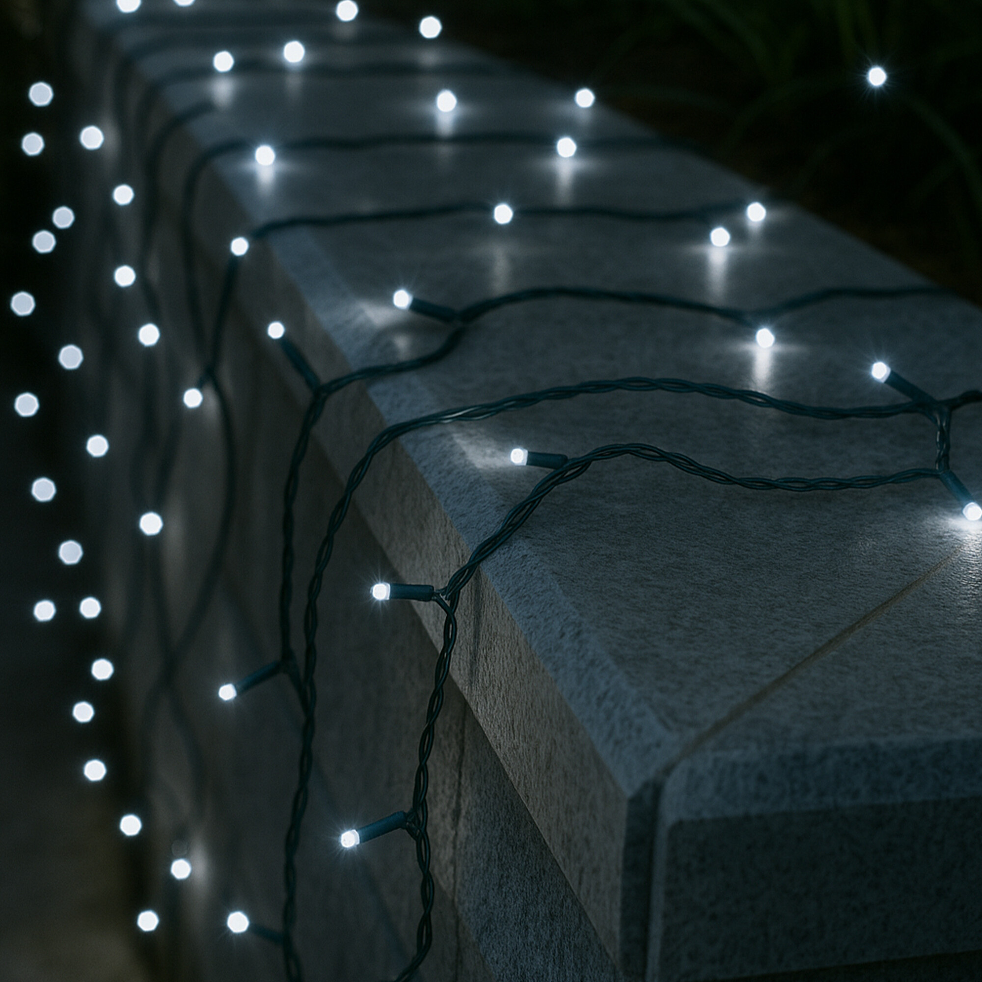 Vďaka napájaniu zo solárneho panelu nie je potrebná elektrická zásuvka, čo umožňuje jednoduché umiestnenie napríklad na záhradu, terasu alebo balkón. Počas dňa sa reťaz automaticky nabíja slnečnou energiou a po zotmení sa rozsvieti studeným bielym svetlom.