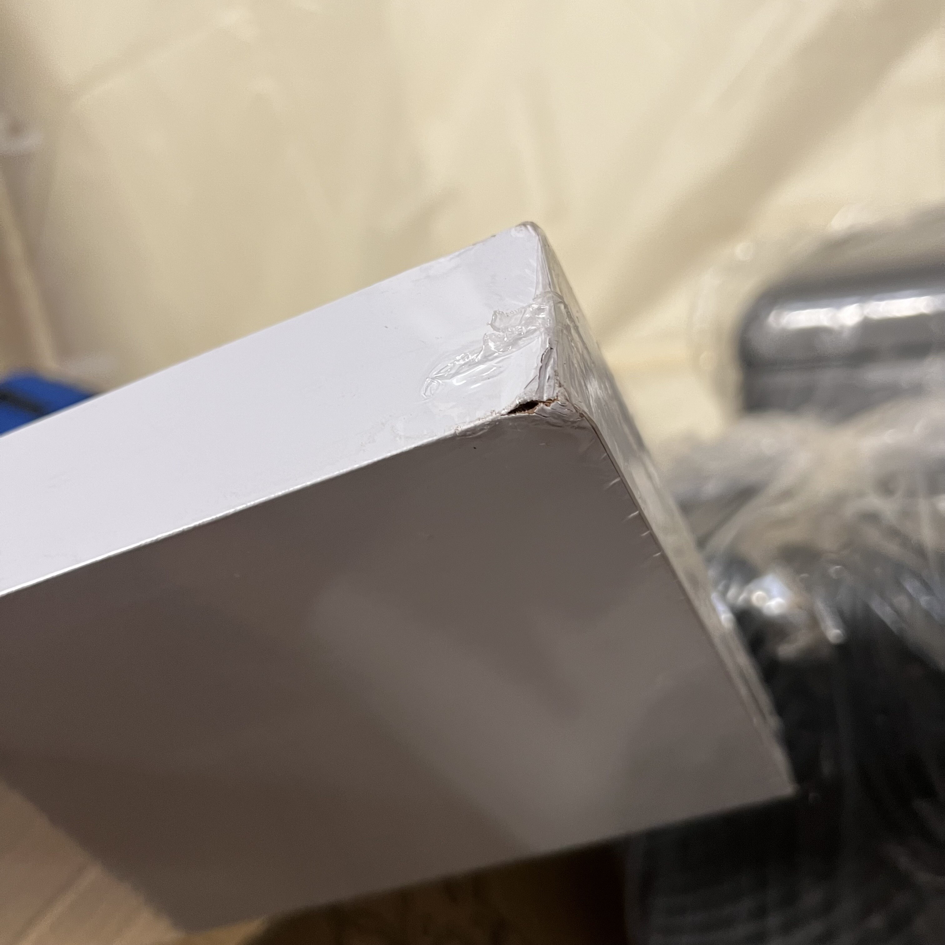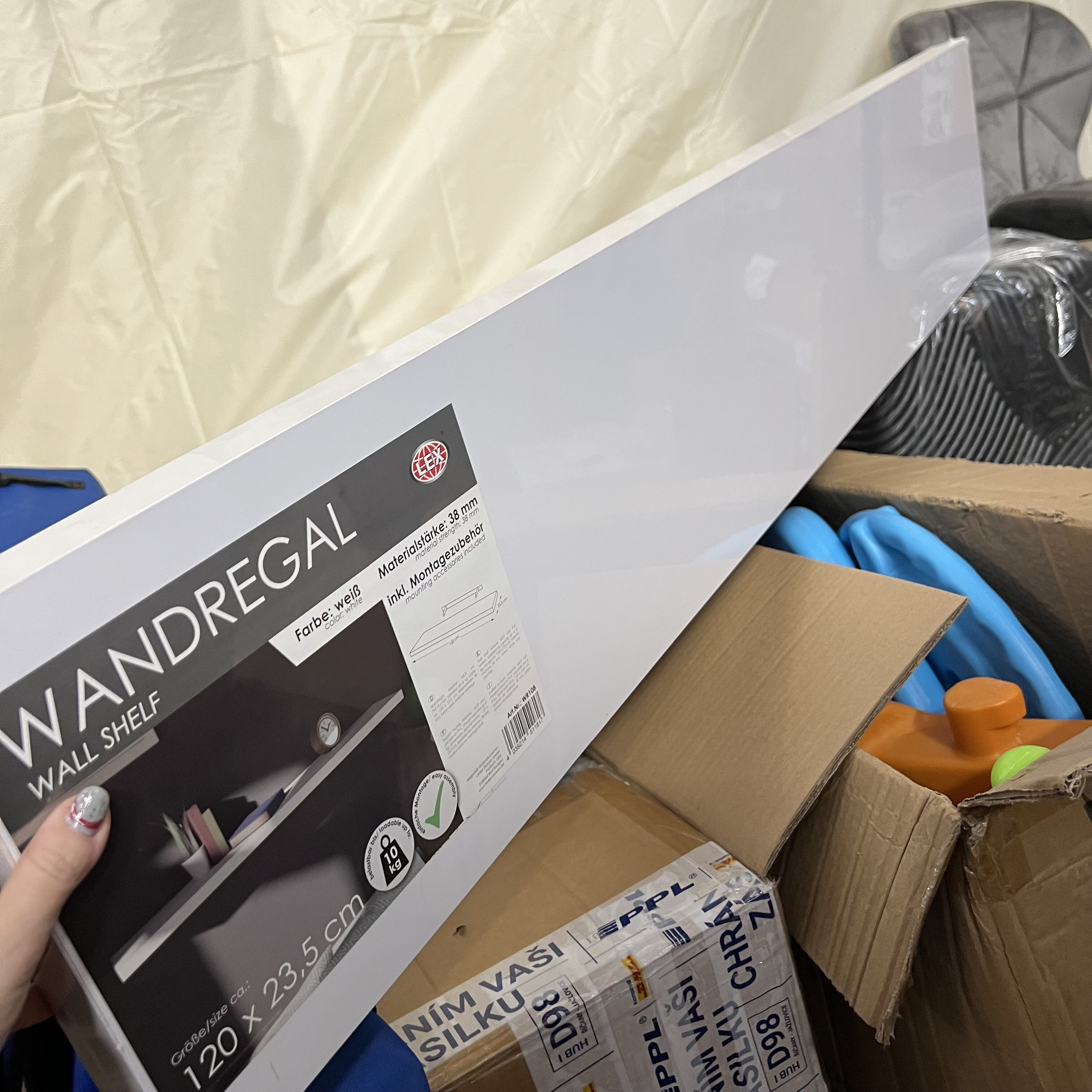Polička má poškodené rohy a hrany. V ochrannej fólii, nepoužitá.