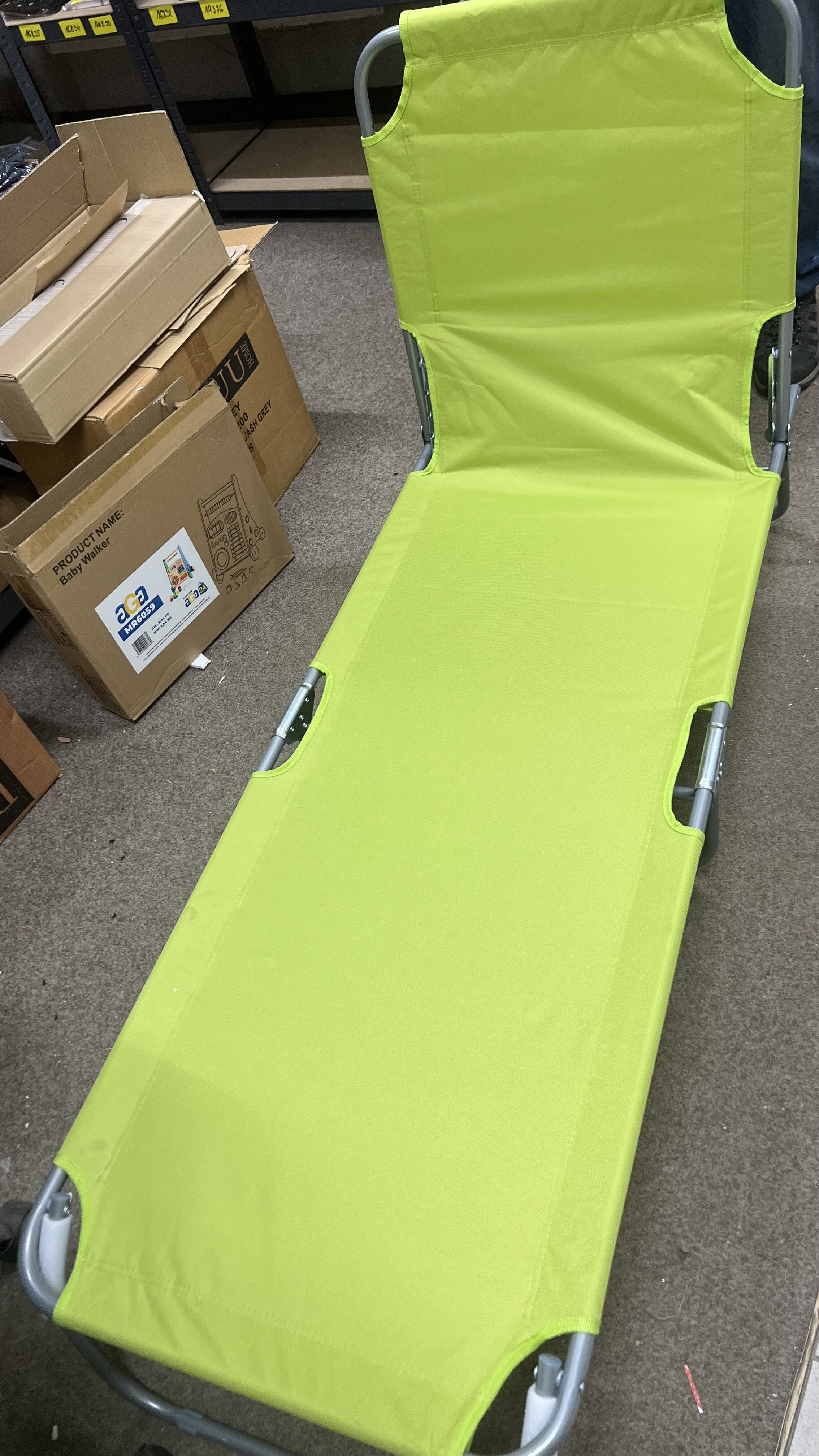 Skladacie záhradné lehátko so zosilnenou oceľovou konštrukciou, v modernom dizajne, vhodné do záhrad, na kempovanie alebo pláže.