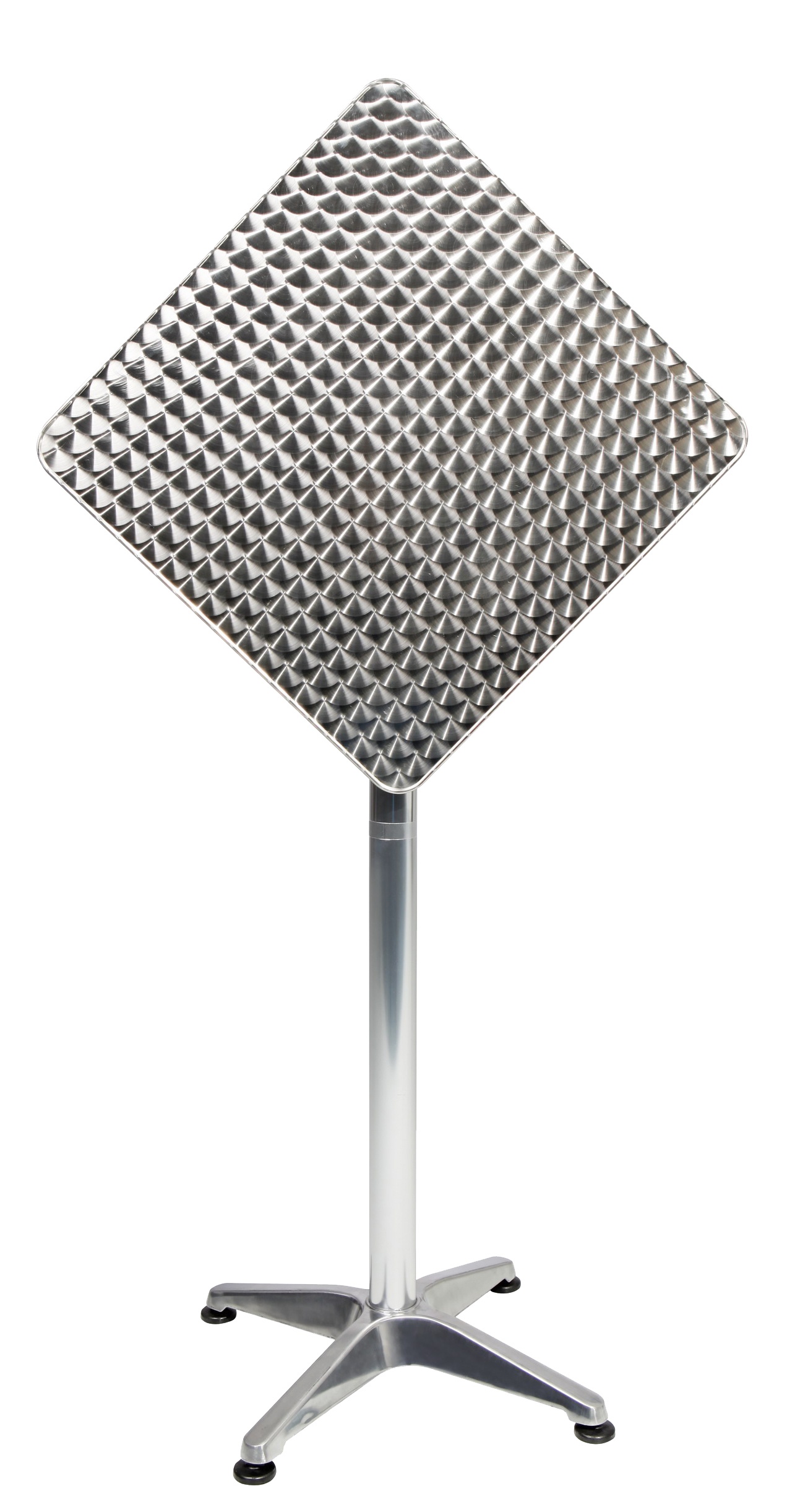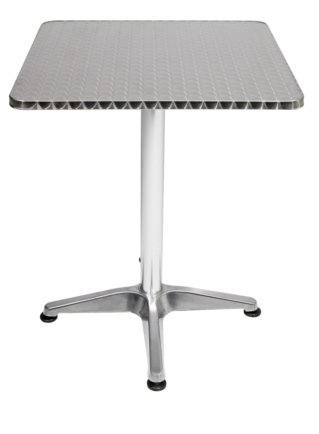 Záhradný stôl BISTRO s pevným hliníkovým rámom a nerezovou doskou v modernom dizajne, vhodný pre záhrady, terasy, kaviarne, altánky, balkóny či pláže.