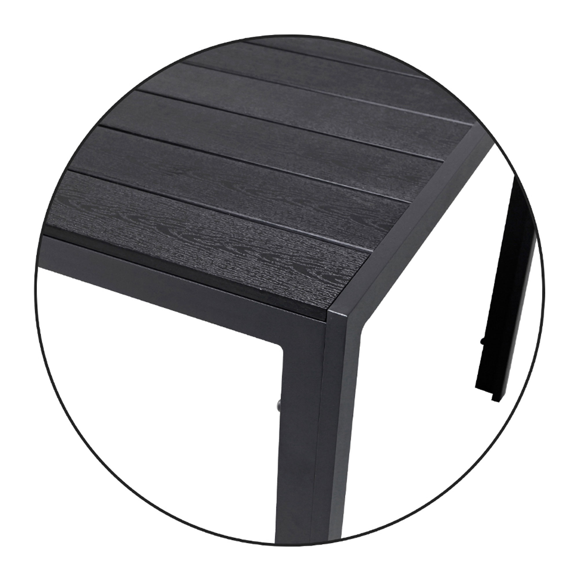 Záhradný masívny stôl s pevným kovovým rámom v modernom dizajne, vhodný do záhrad, terasy, altánky, balkóny alebo pláže.