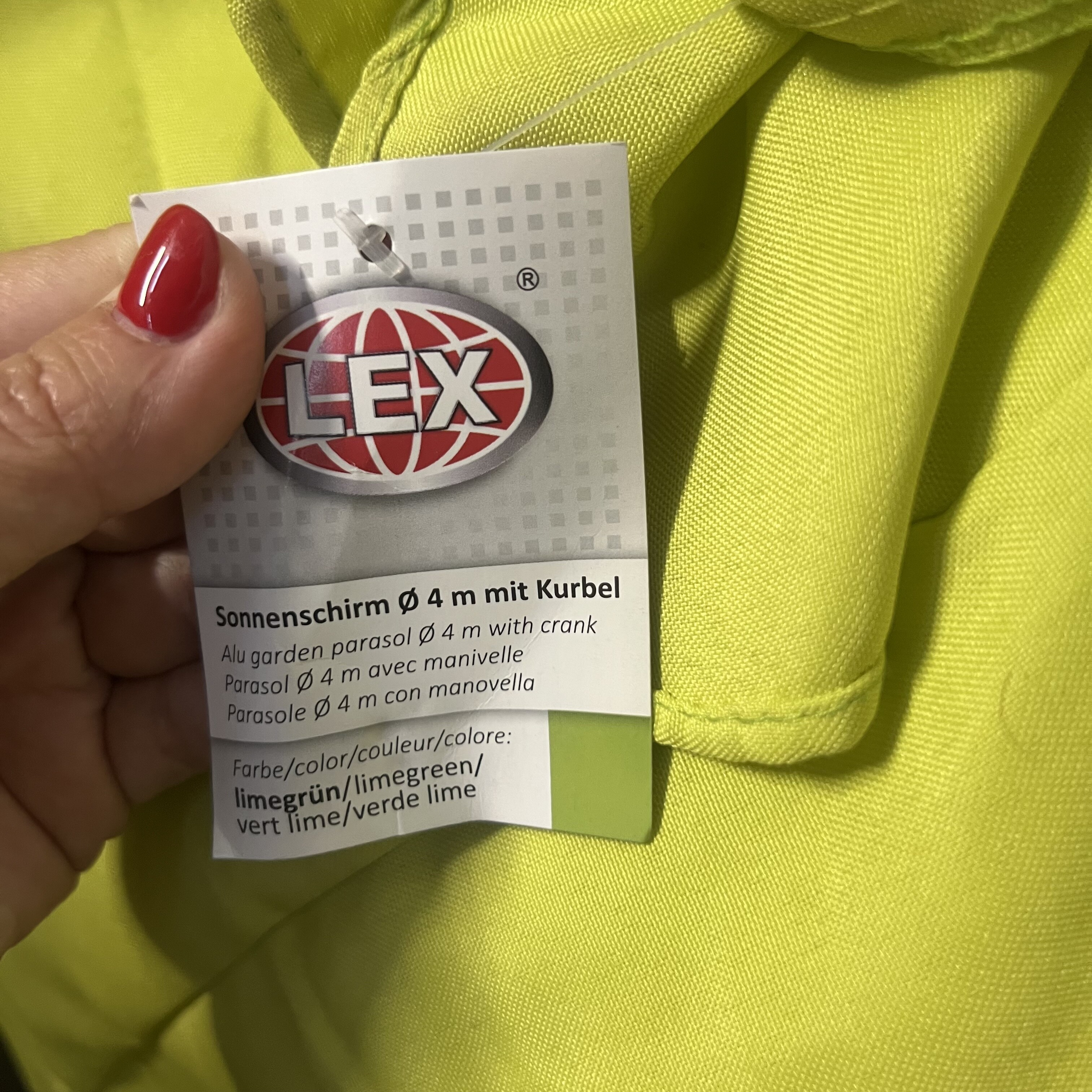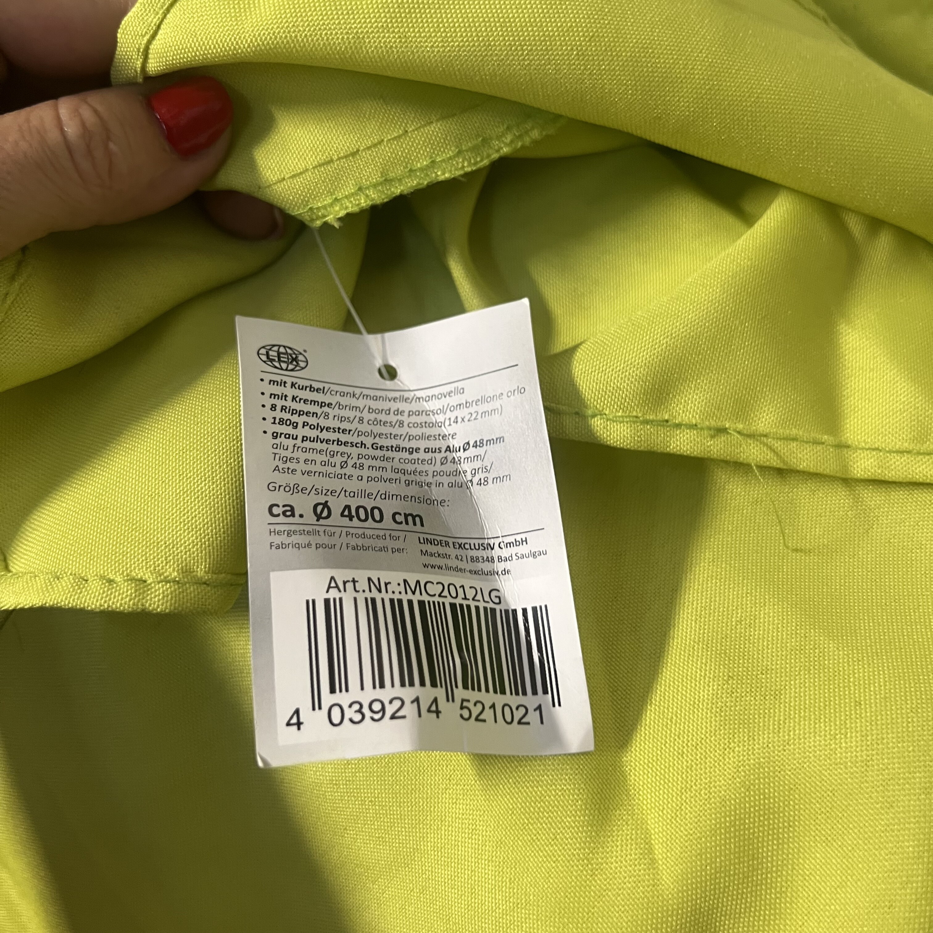Slnečník bol použitý, má stále originálnu visačku. Javí drobné známky opotrebovania – mierne znečistenú látku a ľahko poškrabaný rám (viď fotografie).