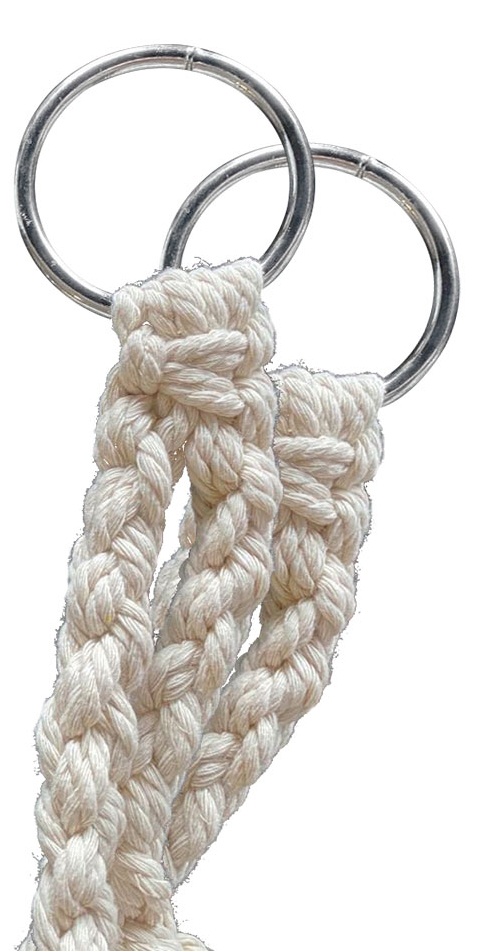 Sedacia časť je pripevnená stabilnými kovovými krúžkami, takže stoličku možno zavesiť takmer kamkoľvek. Sedacia časť je vyrobená z pevného pleteného lana.