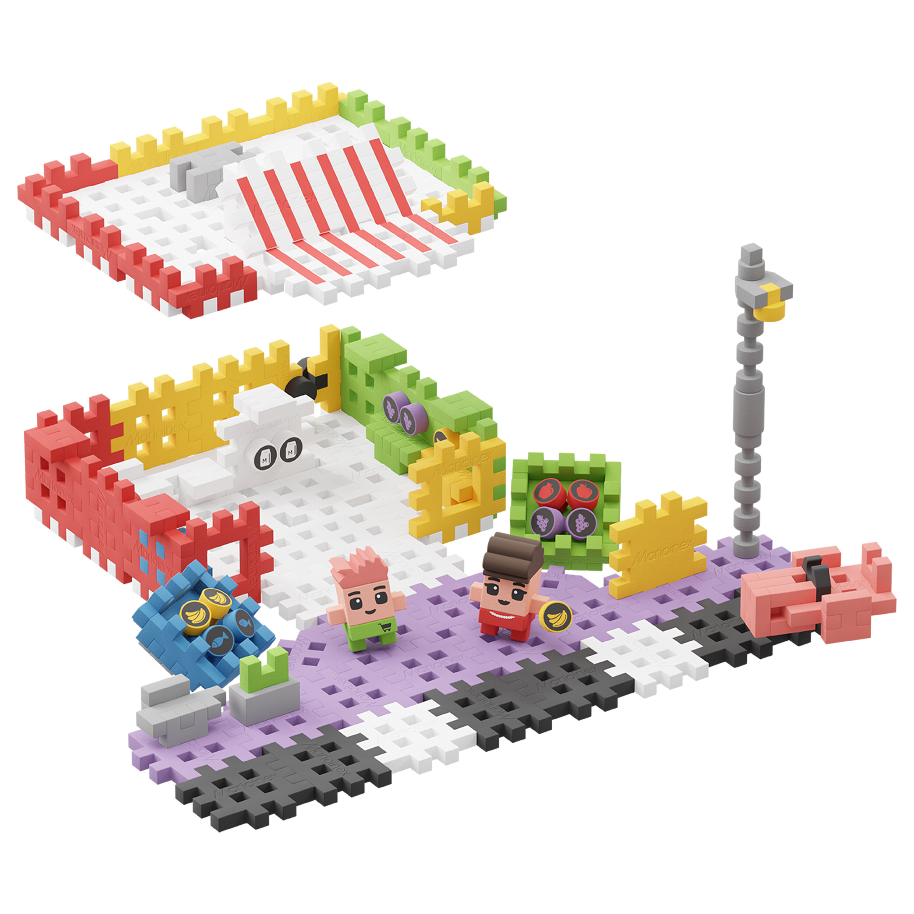 Sada obsahuje 148 kociek a dve originálne postavy, z ktorých jedna sa poriadne zapotí, keď zásobuje miestnych obyvateľov čerstvým jedlom. Postavte si obchod podľa návodu a skombinujte ho s ďalšími sadami zo série Waffle City, aby ste oživili mesto. Samozrejme, nie bez pomoci vašej predstavivosti. A keď si s dieťaťom vymyslíte niečo nové, môžete použiť prvky súpravy na vytvorenie úplne novej a fascinujúcej štruktúry.