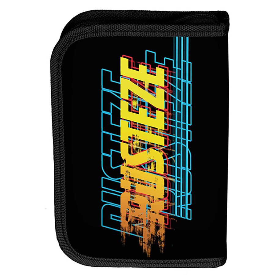 Jednoposchodový penál s veľkou priehradkou na písanie a 2 chlopňami, ideálny pre prvý stupeň základnej školy.